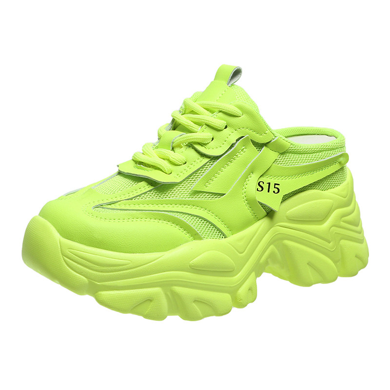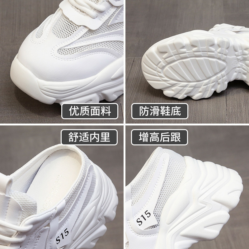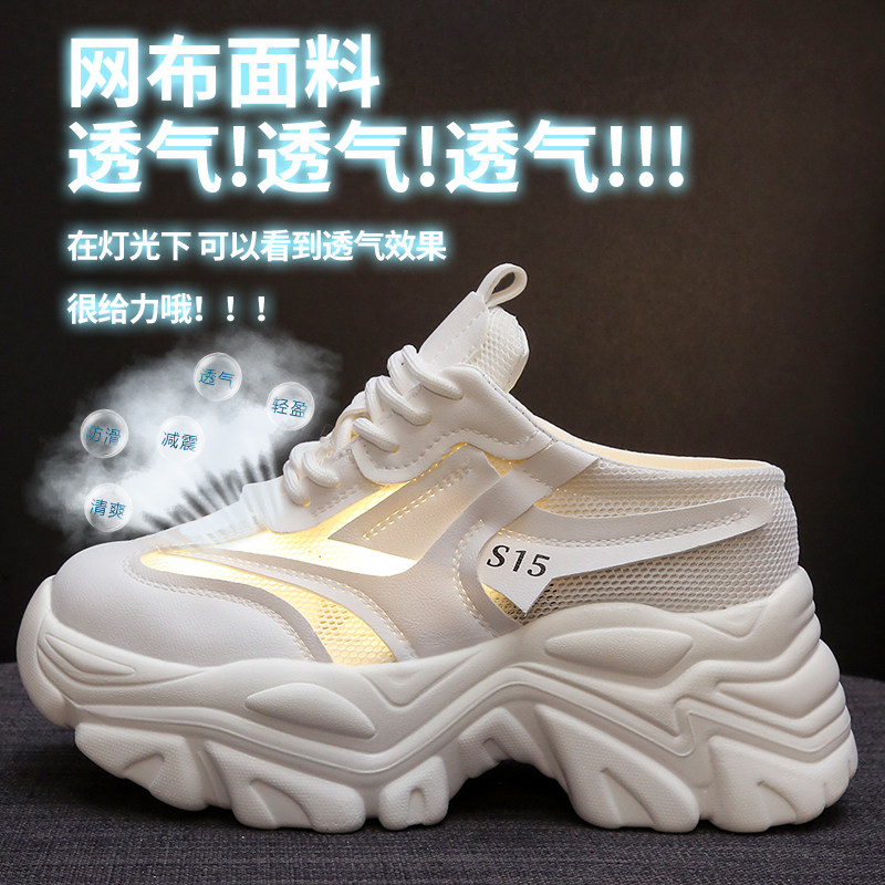 包头半拖鞋女2026夏季外穿百搭新款透气网面凉拖厚底内增高老爹鞋