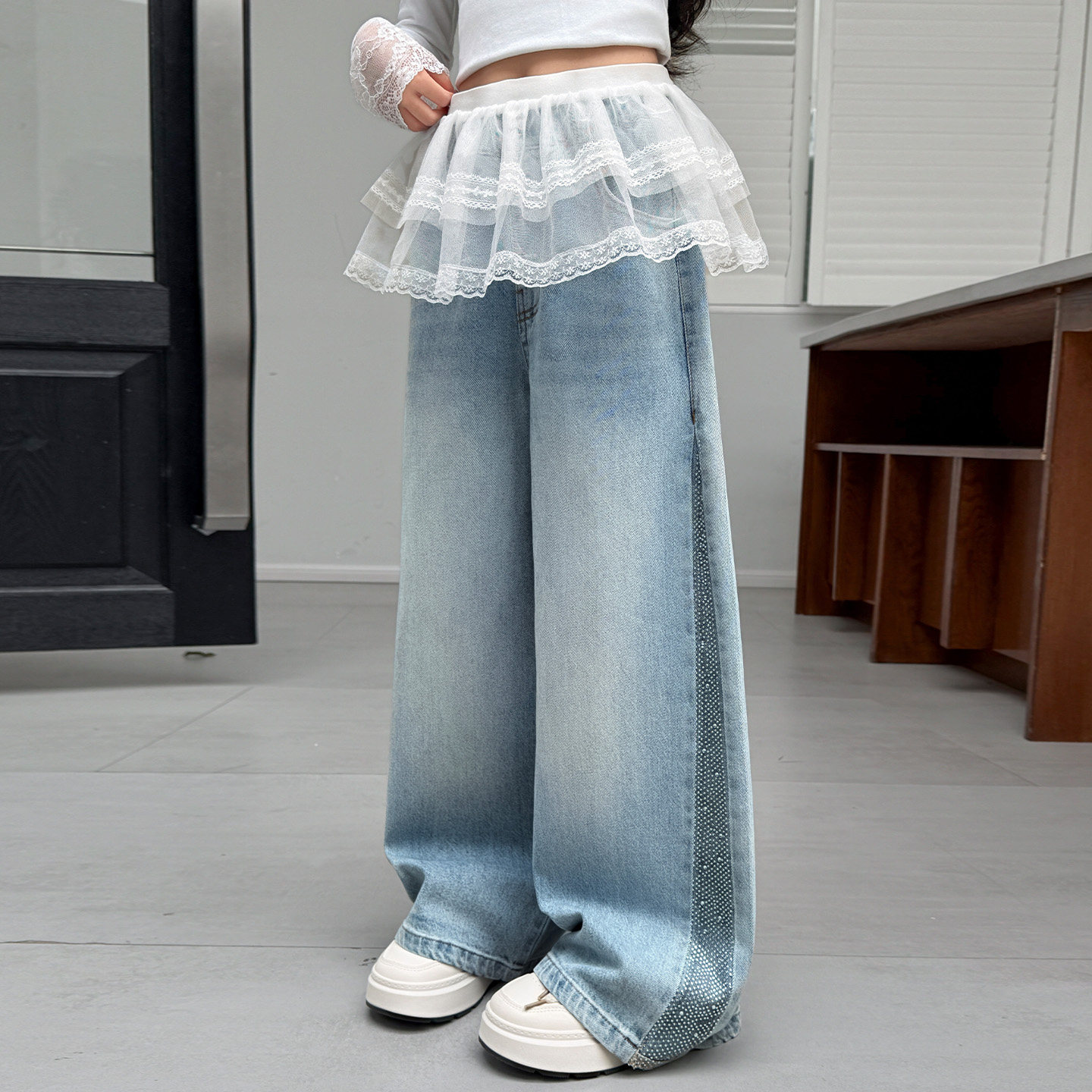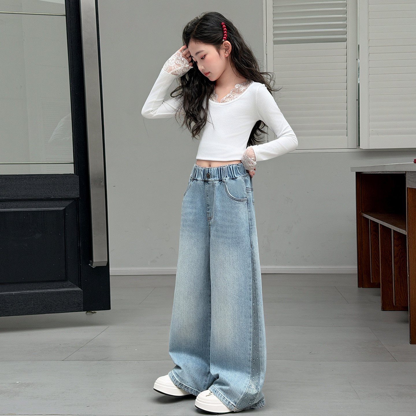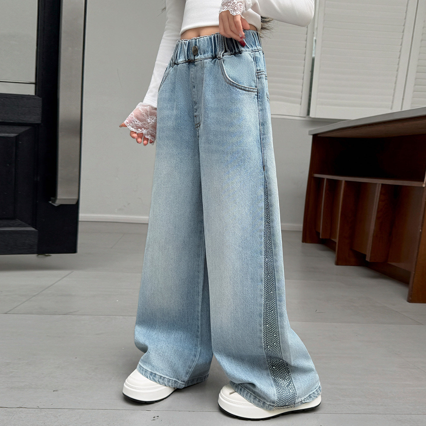 女童牛仔裤春秋2026新款儿童裤子春装中大童初中生女孩韩版阔腿裤