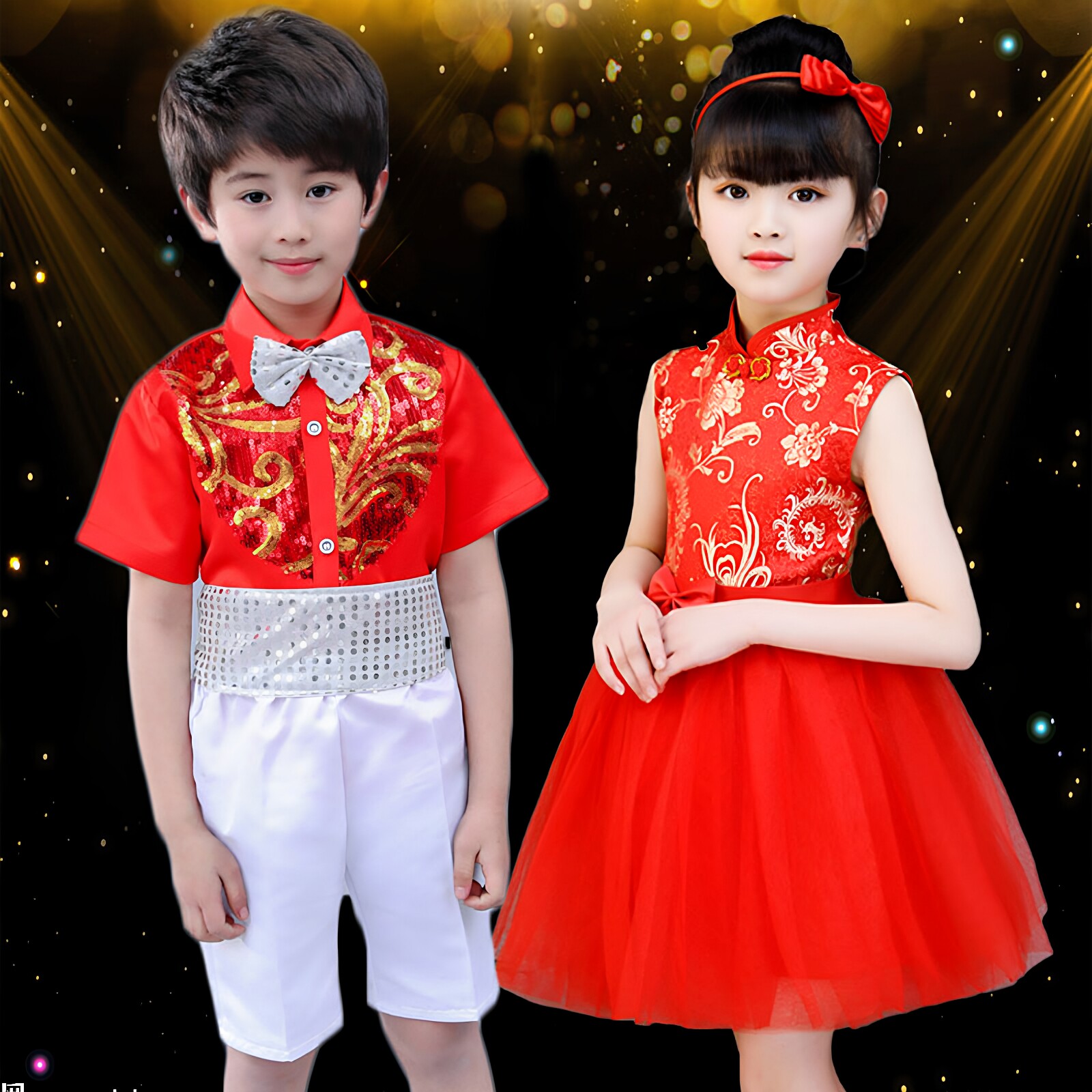 儿童合唱演出服男女童红色歌唱祖国小学生诗歌朗诵班级比赛表演服