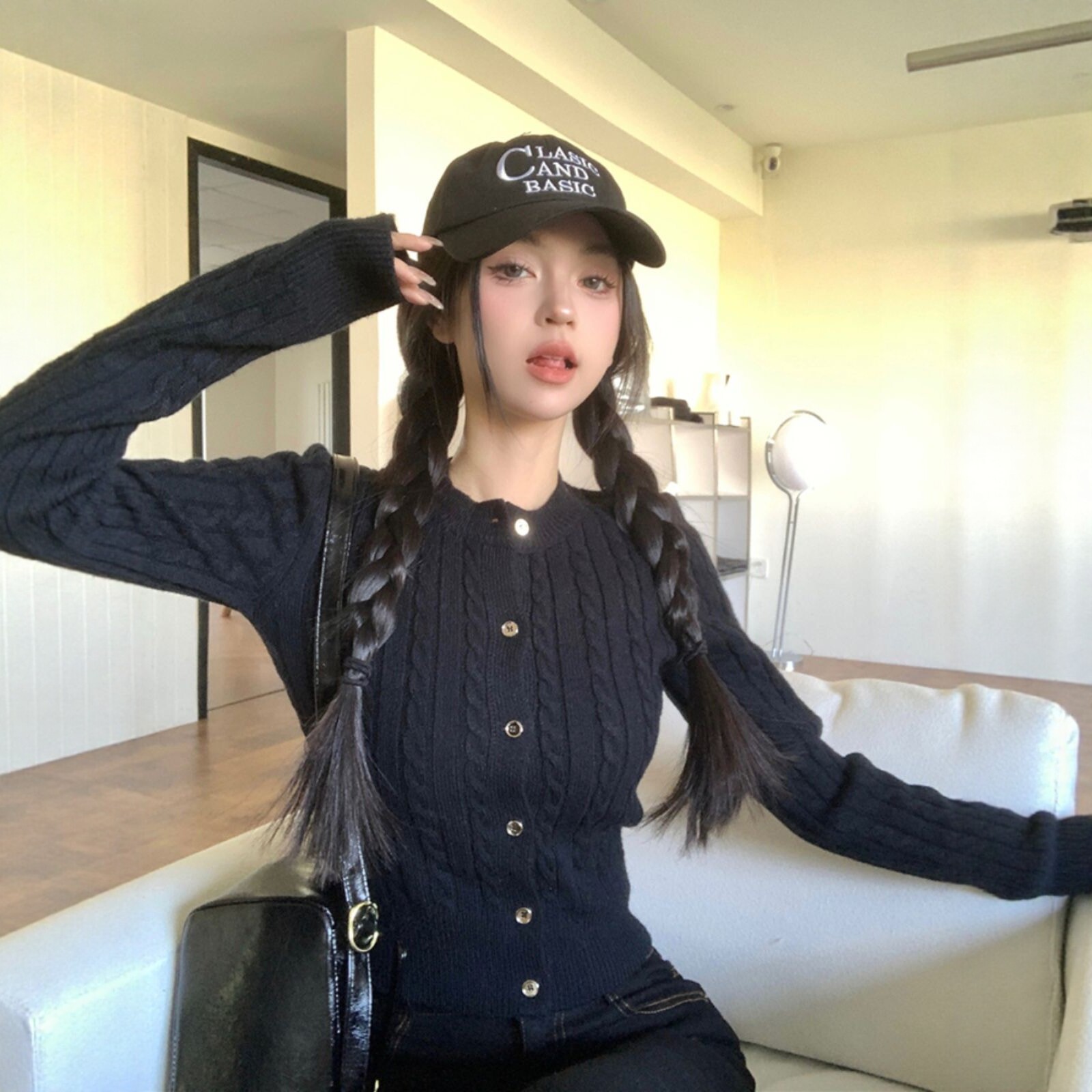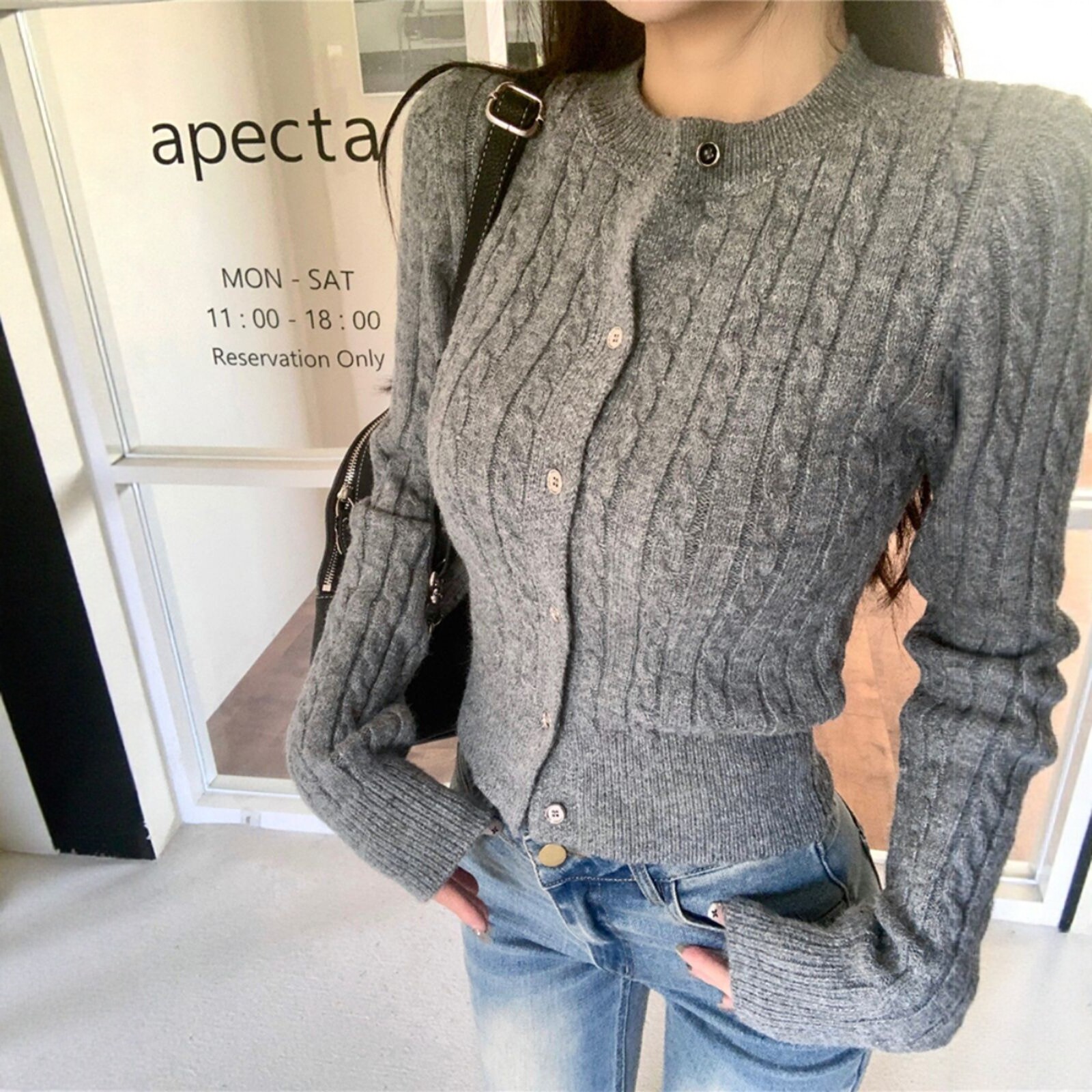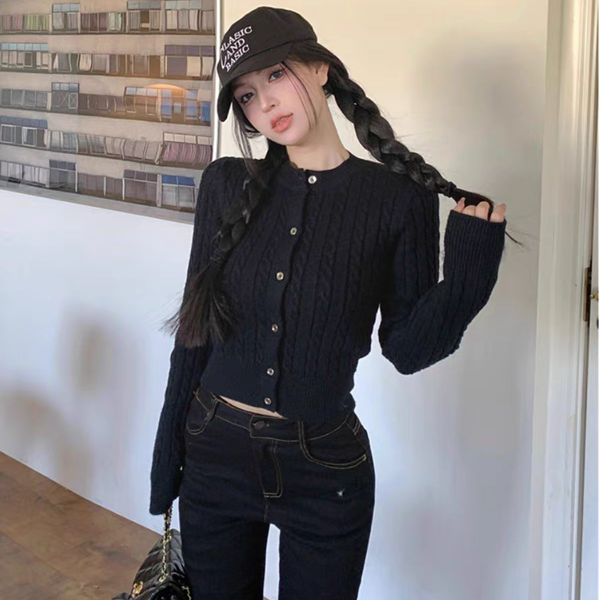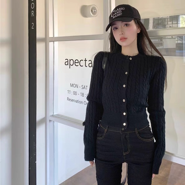 黑色麻花毛衣开衫女款2025新款秋冬冬内搭修身短款打底针织上衣潮