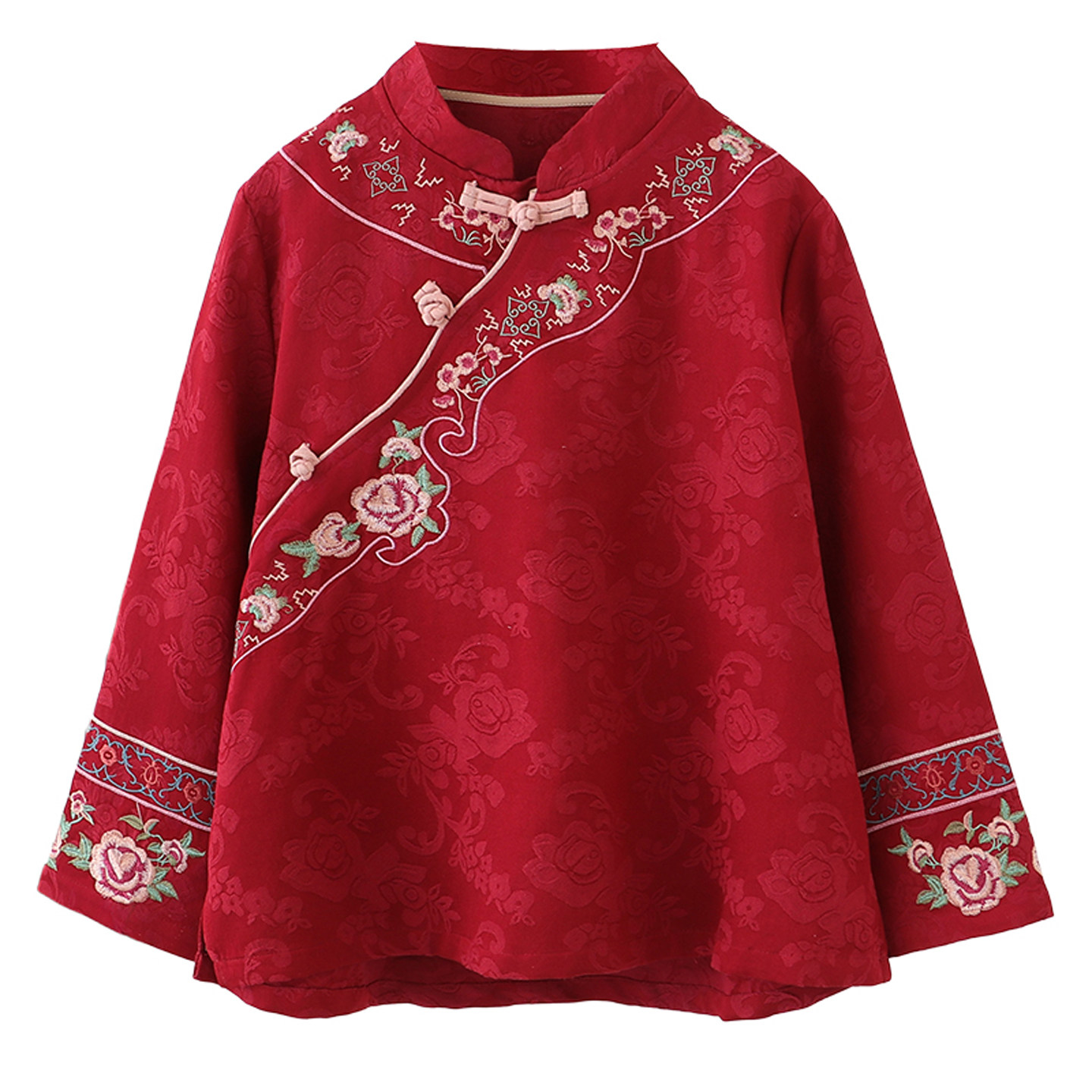 大码女装国风上衣2026春季新款胖妹妹宽松遮肚子绣花立领盘扣衬衫