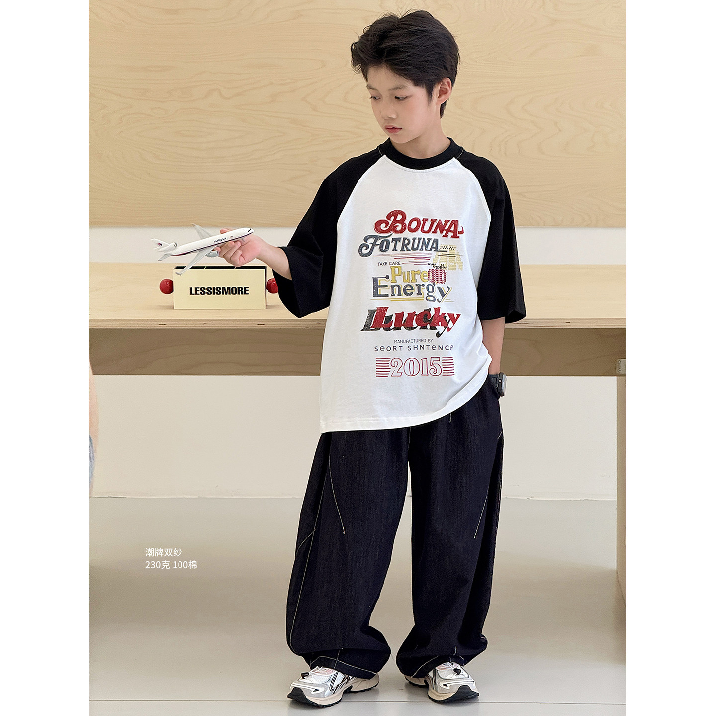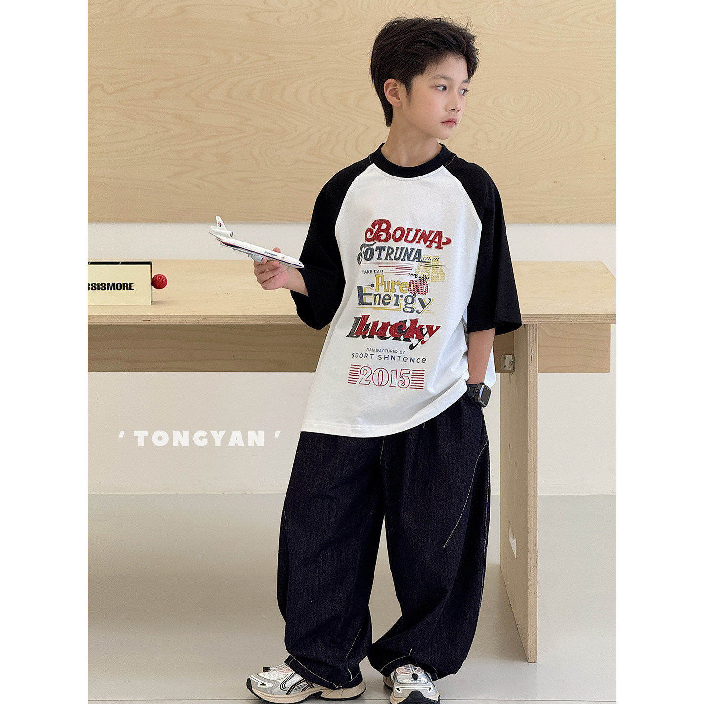 男童短袖T恤2026夏装新款中大童插肩袖上衣纯棉体恤薄款儿童半袖