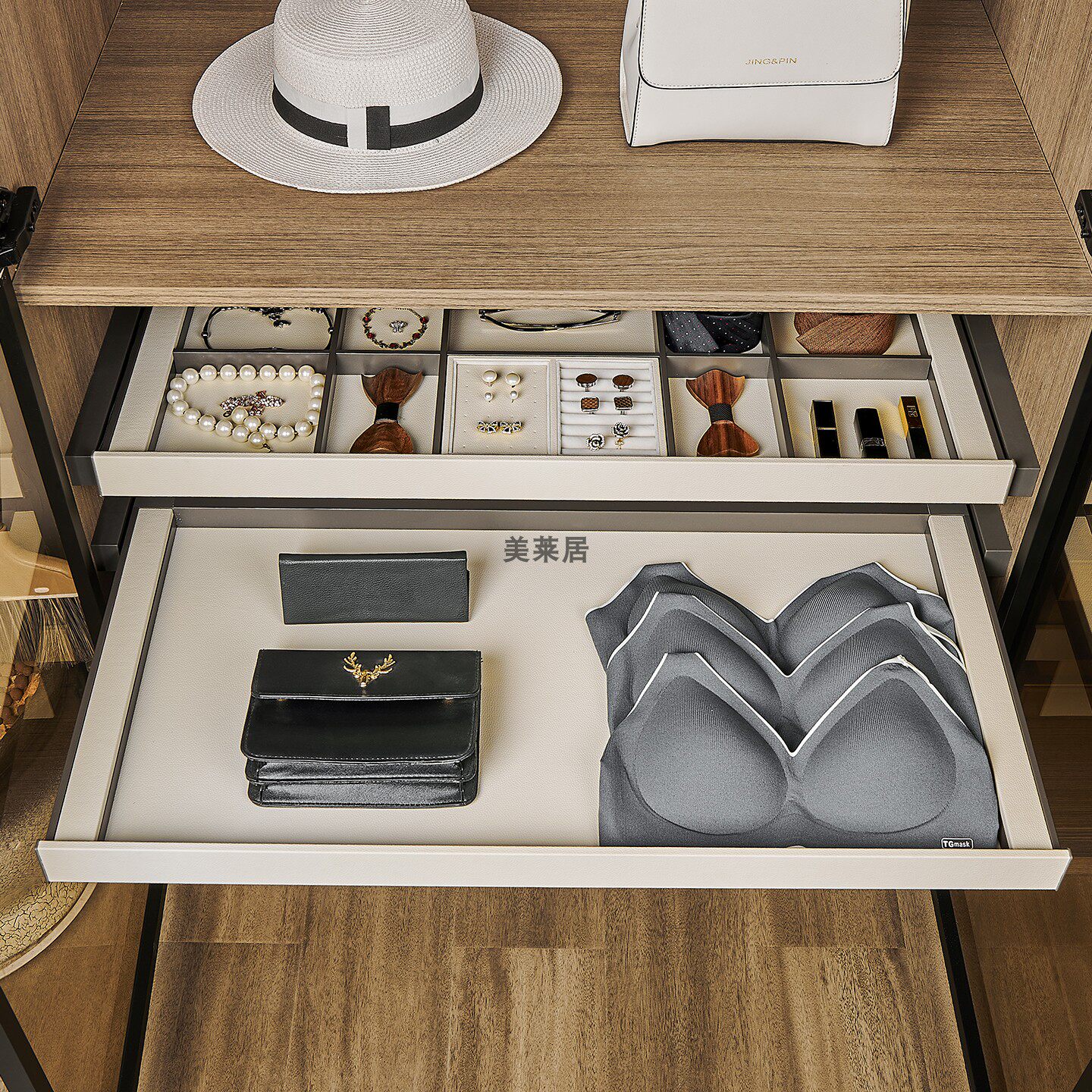 衣柜首饰盒抽屉式多功能收纳拉篮衣帽间抽拉多宝阁格子抽内衣抽