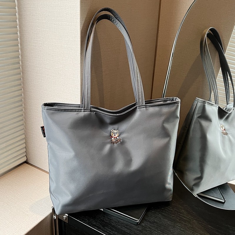 大容量托特包女夏2026新款刺绣小熊尼龙帆布包通勤单肩手提购物袋