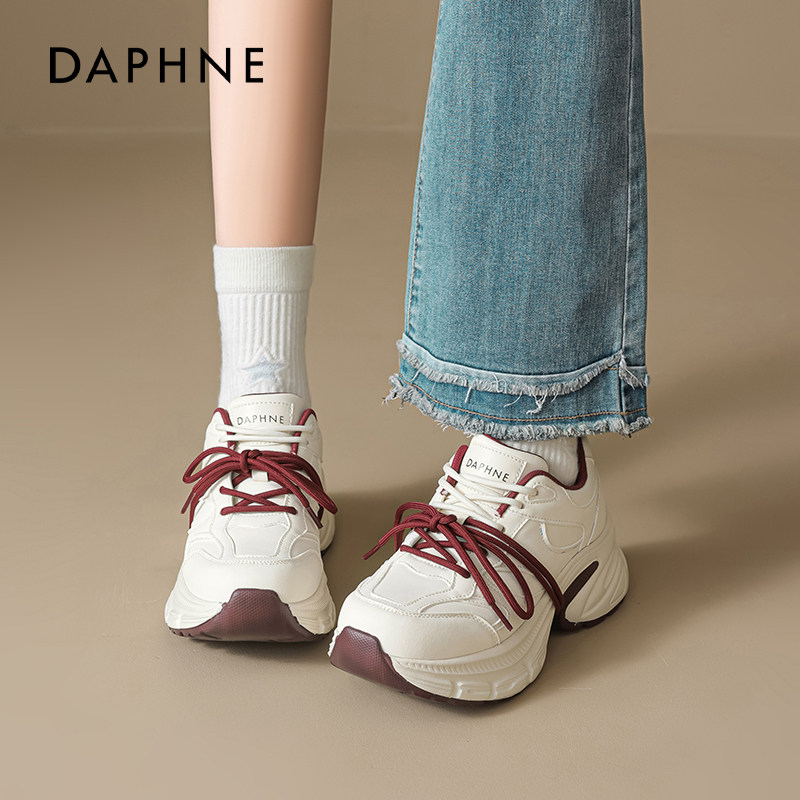 达芙妮厚底老爹鞋女款2026新款春季小个子增高小白鞋子休闲运动鞋