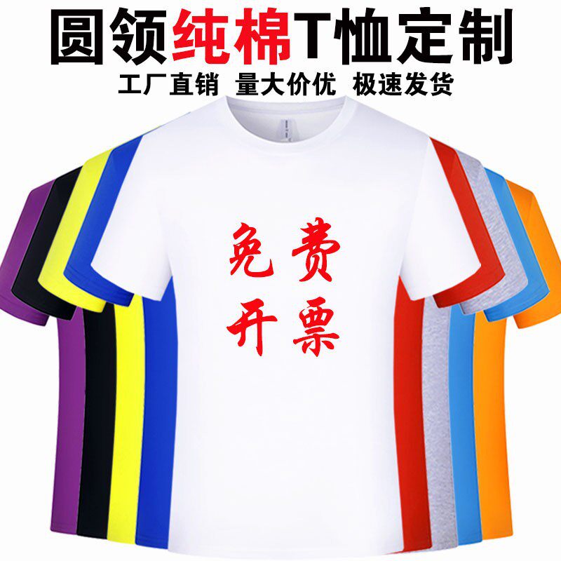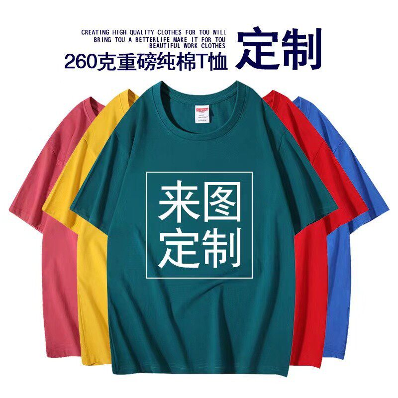 重磅纯棉t恤定制logo夏季短袖男工作服纯色圆领广告衫速干衣印花