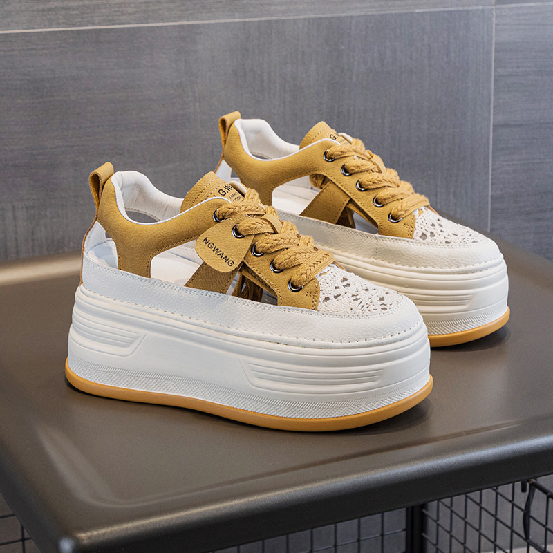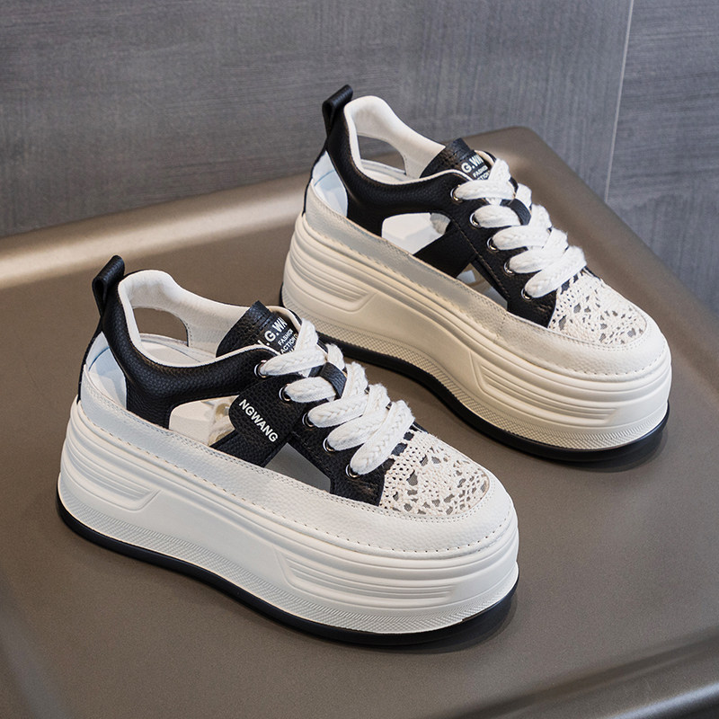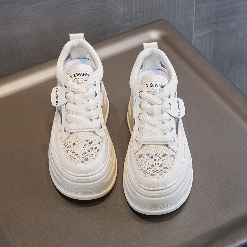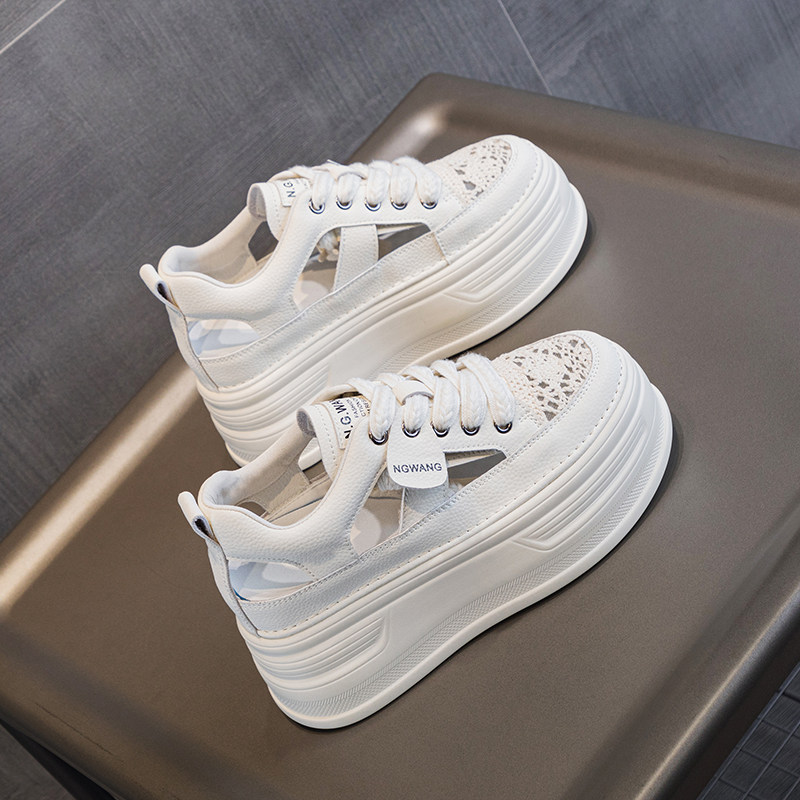 8CM内增高小白鞋女2026夏季新款小个子透气网面厚底休闲镂空凉鞋