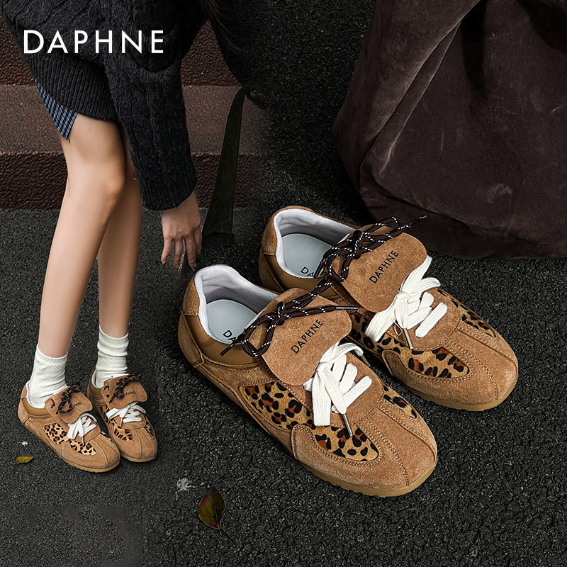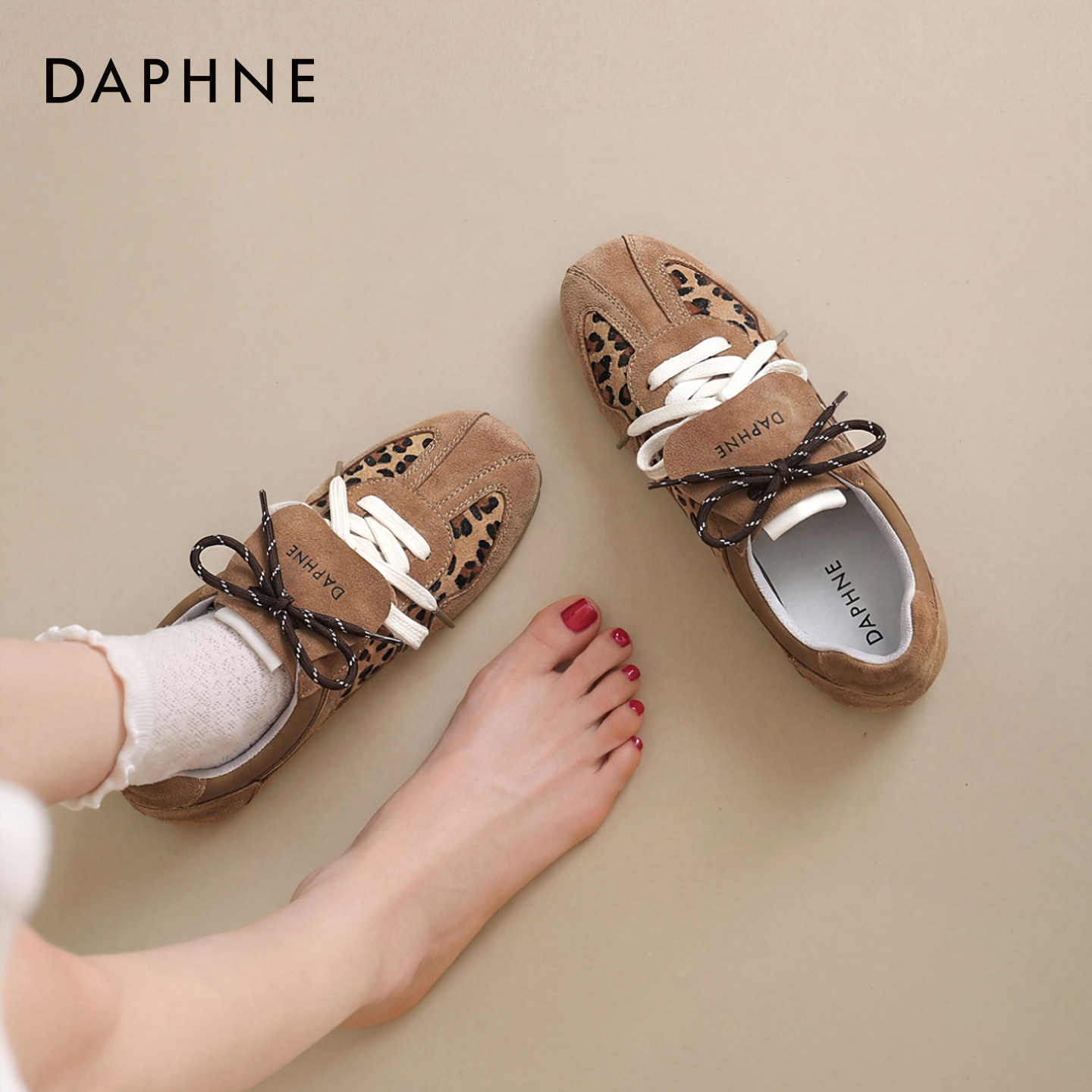 达芙妮豹纹芭蕾德训鞋女款2026新款春季平底帆布鞋子运动休闲板鞋