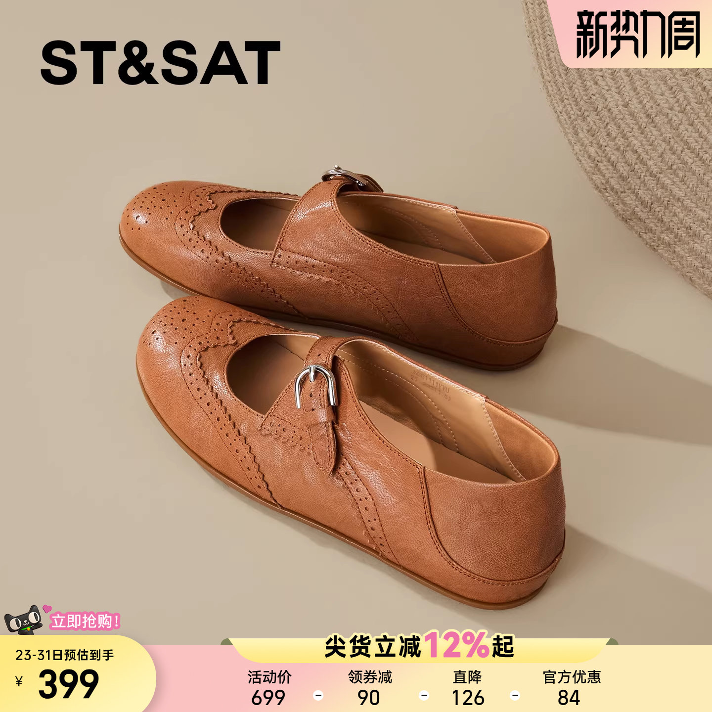 星期六真皮复古圆头玛丽珍单鞋女2026春季新款百搭内增高通勤女鞋