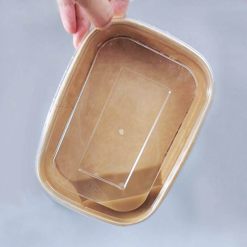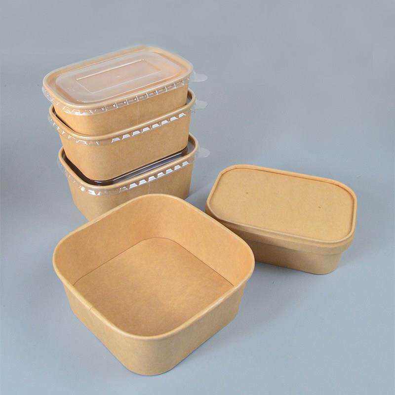 牛皮纸碗正方形一次性轻食打包盒1000ml带盖子防雾环保外送沙拉餐