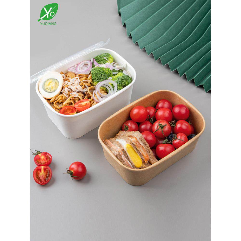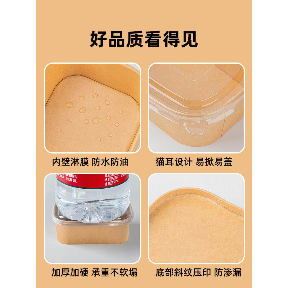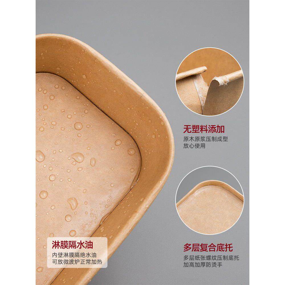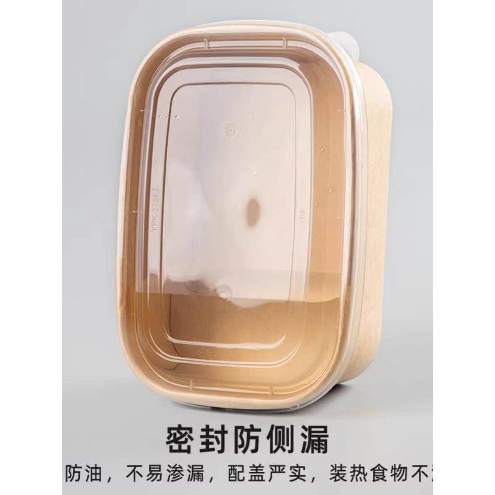 1000ml一次性牛皮纸长方形碗外卖便当快餐打包盒高档沙拉饭盒餐盒