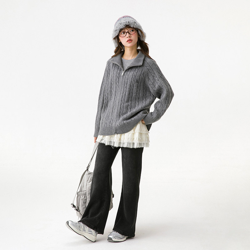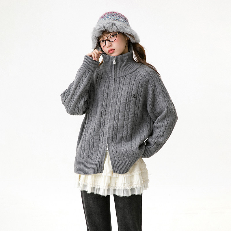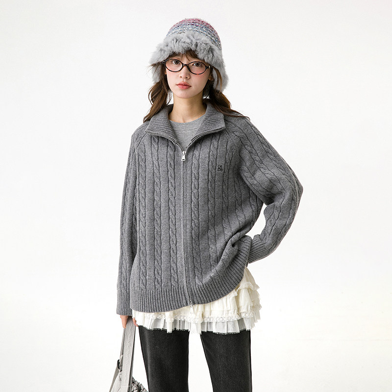 诺诺公主S1N 初中生立领毛衣外套女春秋青少年韩系针织开衫外搭