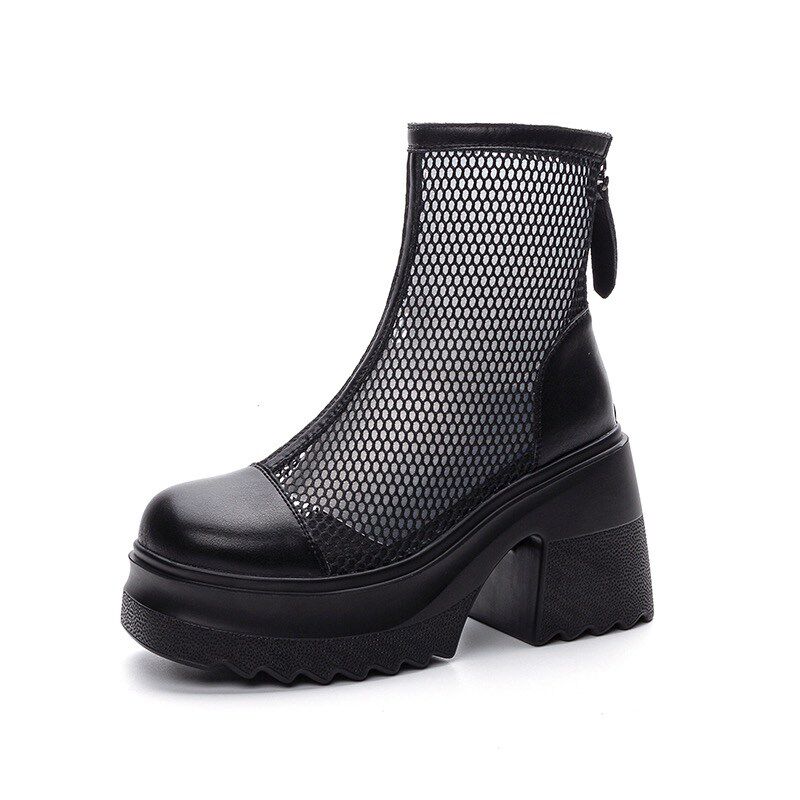 内增高小个子女鞋10厘米网纱透气网靴马丁靴女R夏季薄款厚底短靴