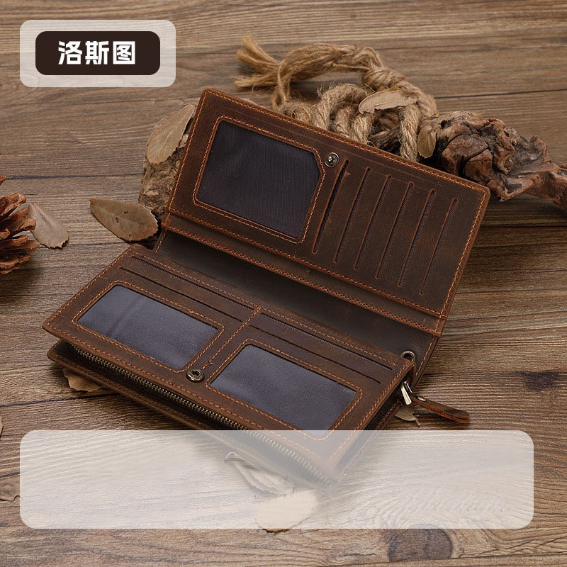 疯马皮长款男款钱包真皮男士手拿包牛皮拉链包大容量多卡位钱夹包