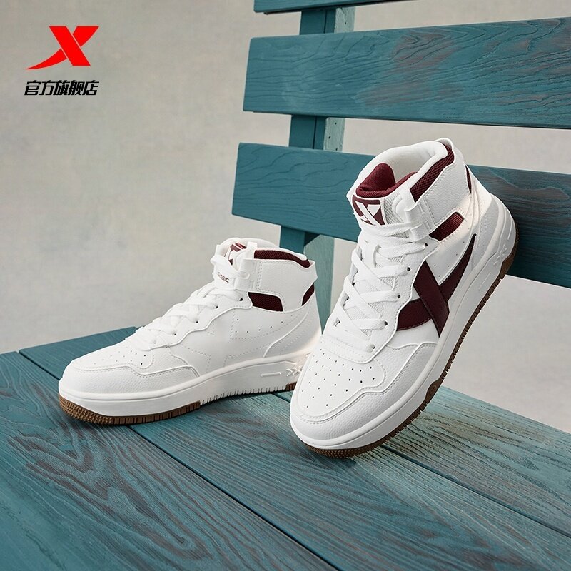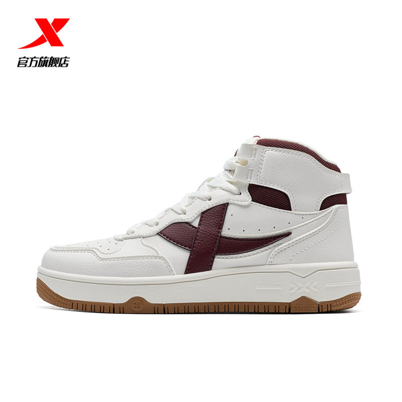 特步苜白3情侣板鞋|2026秋季新款高帮休闲鞋小白鞋女厚底增高鞋子