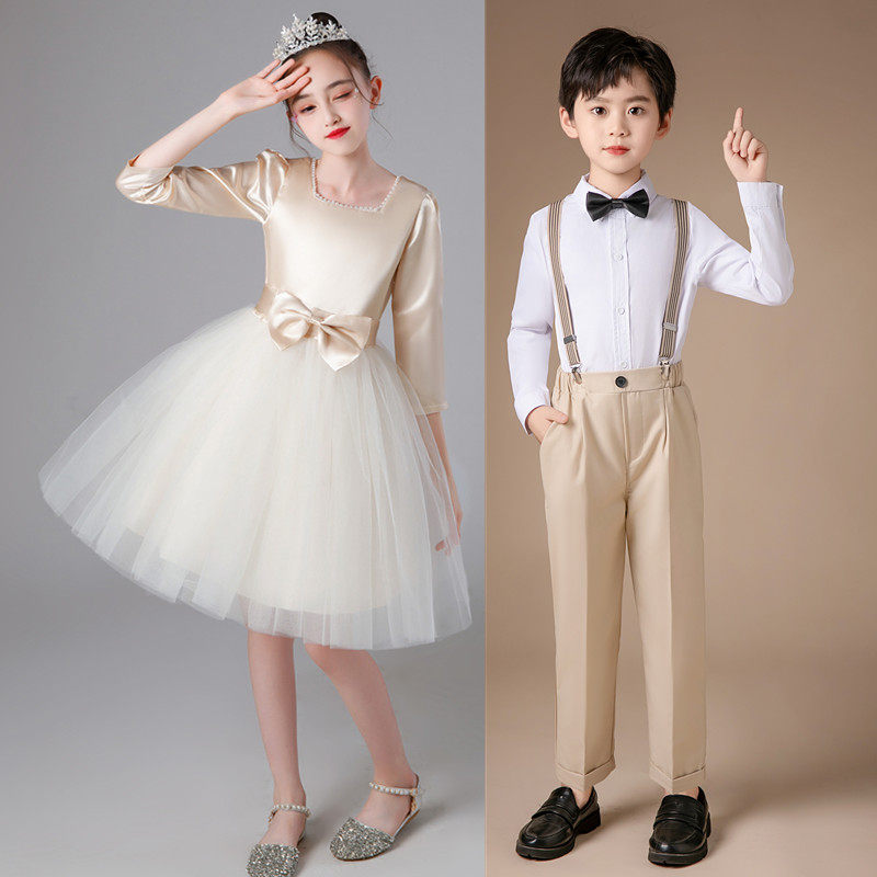 六一儿童合唱演出服中小学生香槟色诗歌朗诵比赛男女童表演礼服新