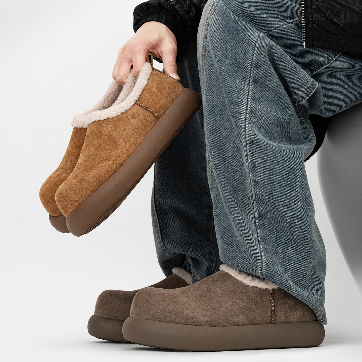 冬季加绒全包厚底小土豆勃肯鞋男女保暖增高大头毛毛棉鞋雪地短靴