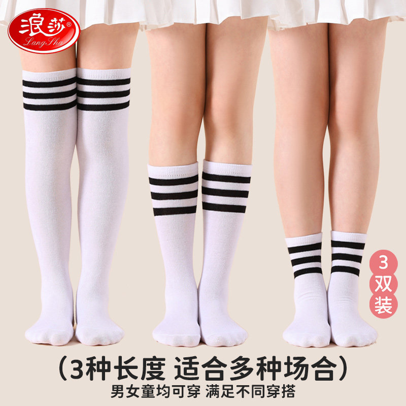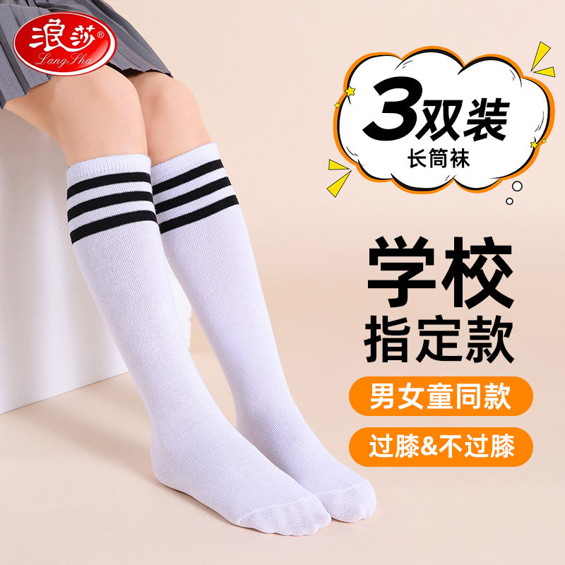 浪莎儿童足球袜子护腿男童长筒防滑小学生专用过膝配校服白色高筒