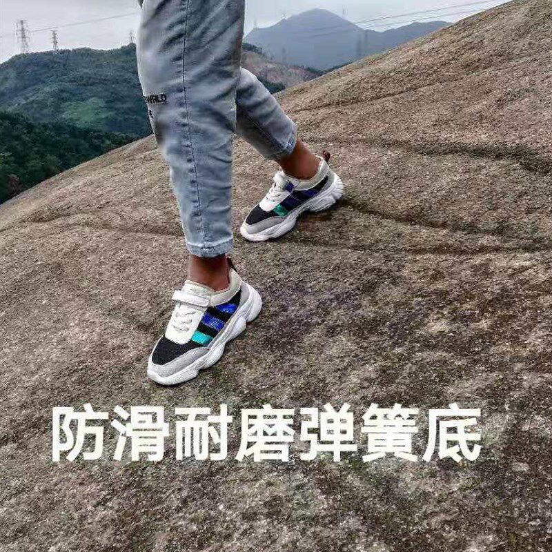 头层真牛皮网面透气轻便小白鞋软底跑步运动防滑老爹休闲男女童鞋