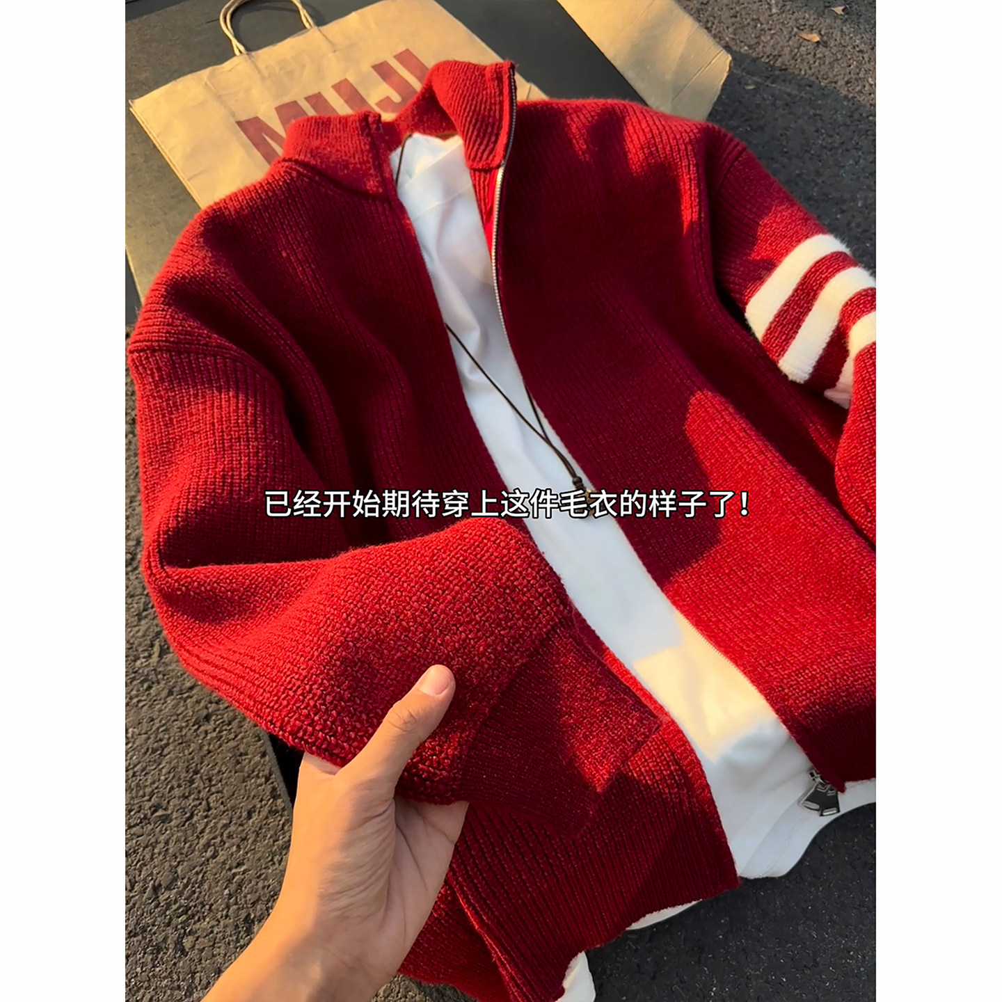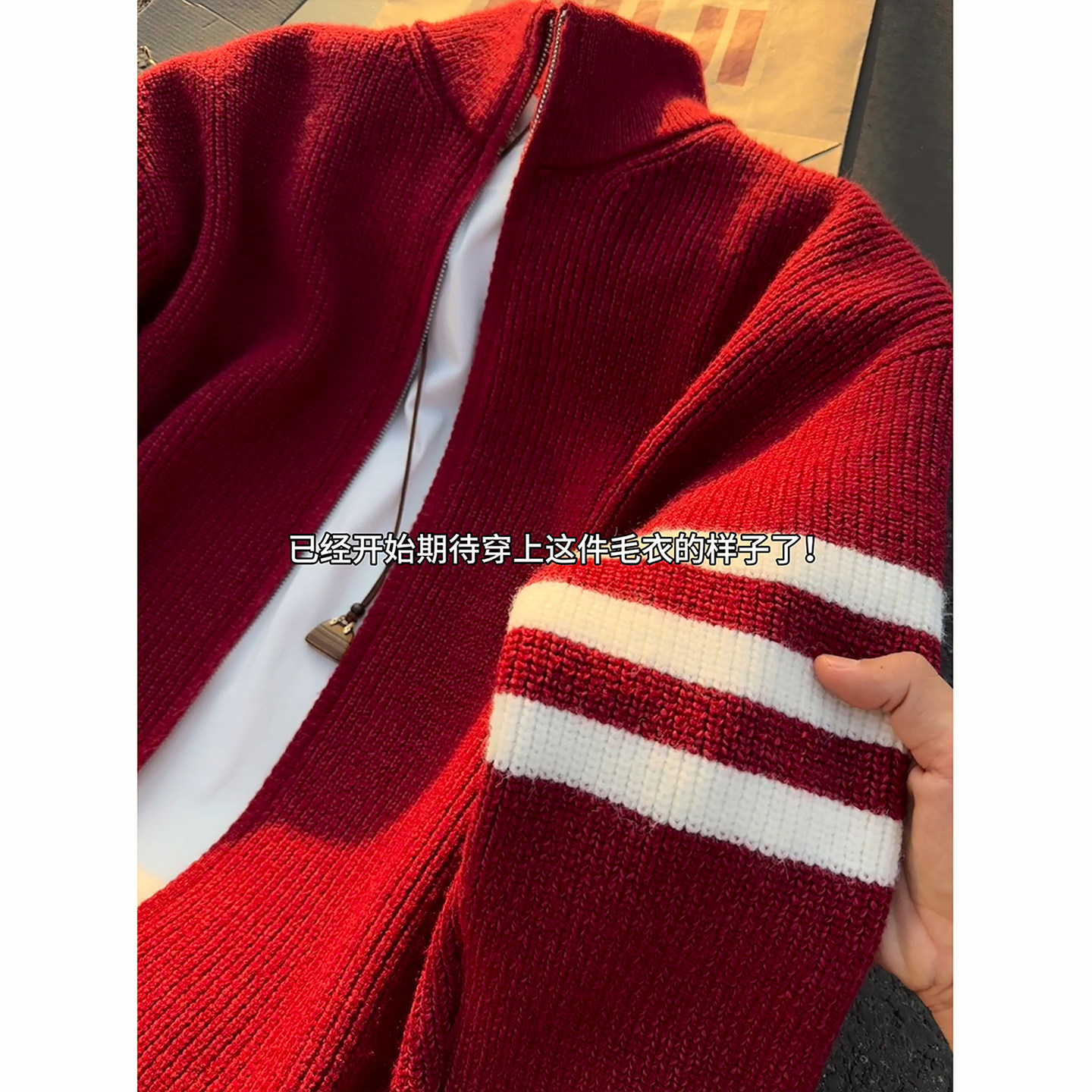 311线报网描述:马年本命年红色开衫拉链毛衣男款冬季外套