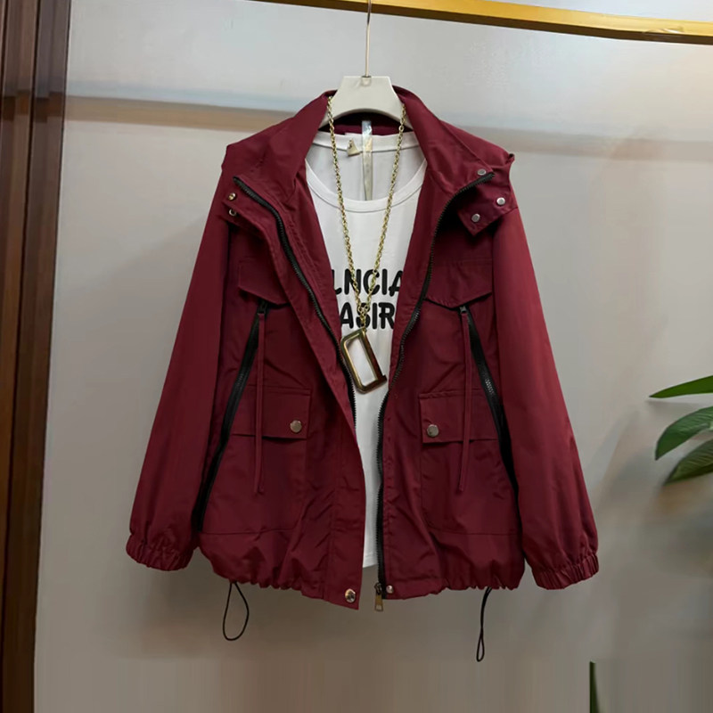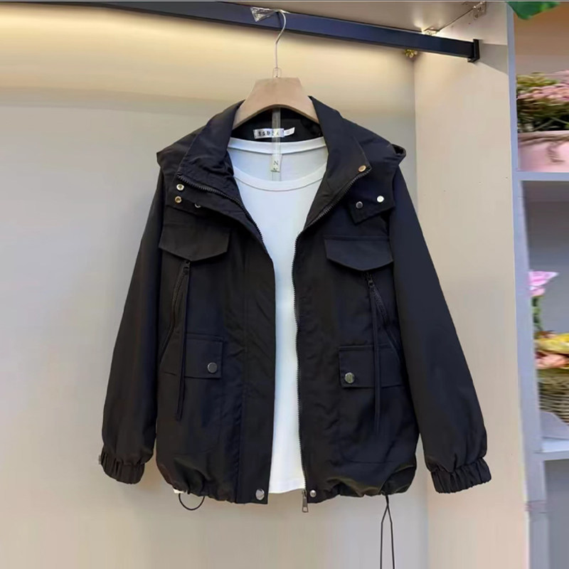 大码女装连帽底抽绳长袖外套胖妹妹韩版2026早春新款百搭休闲上衣