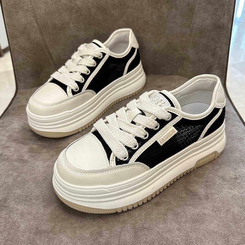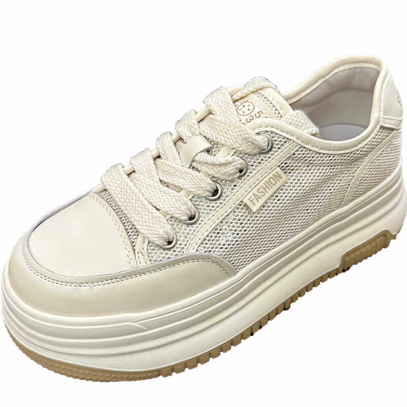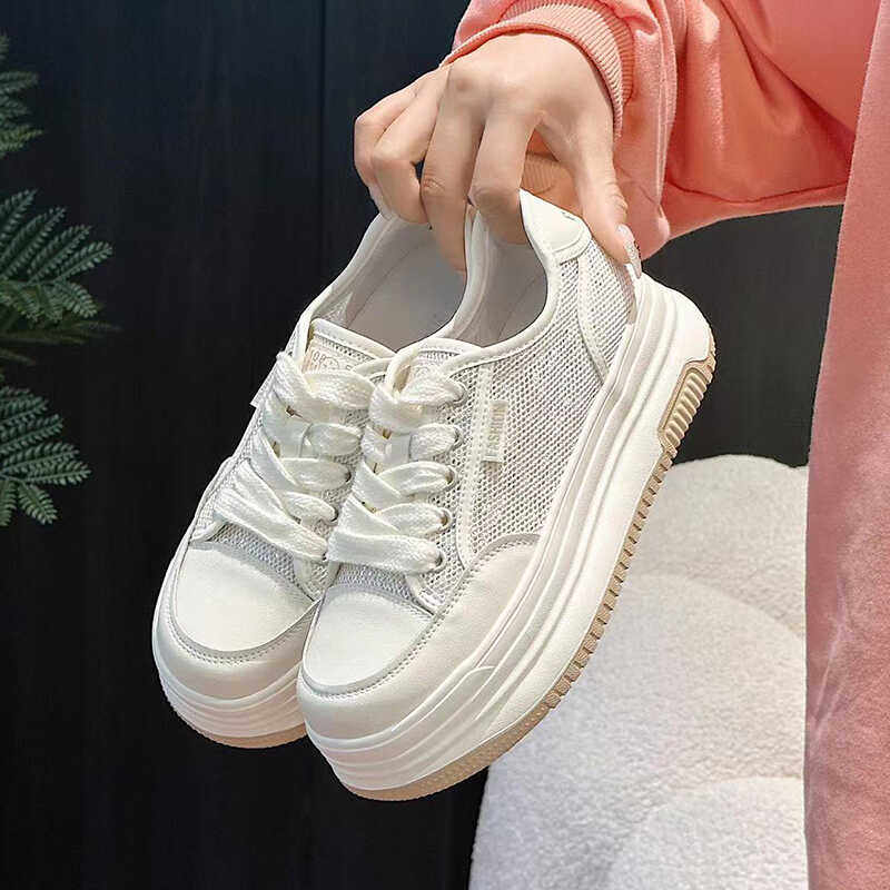 小白鞋女夏薄款透气网面厚底增高轻便超轻亮片休闲运动网鞋面包鞋