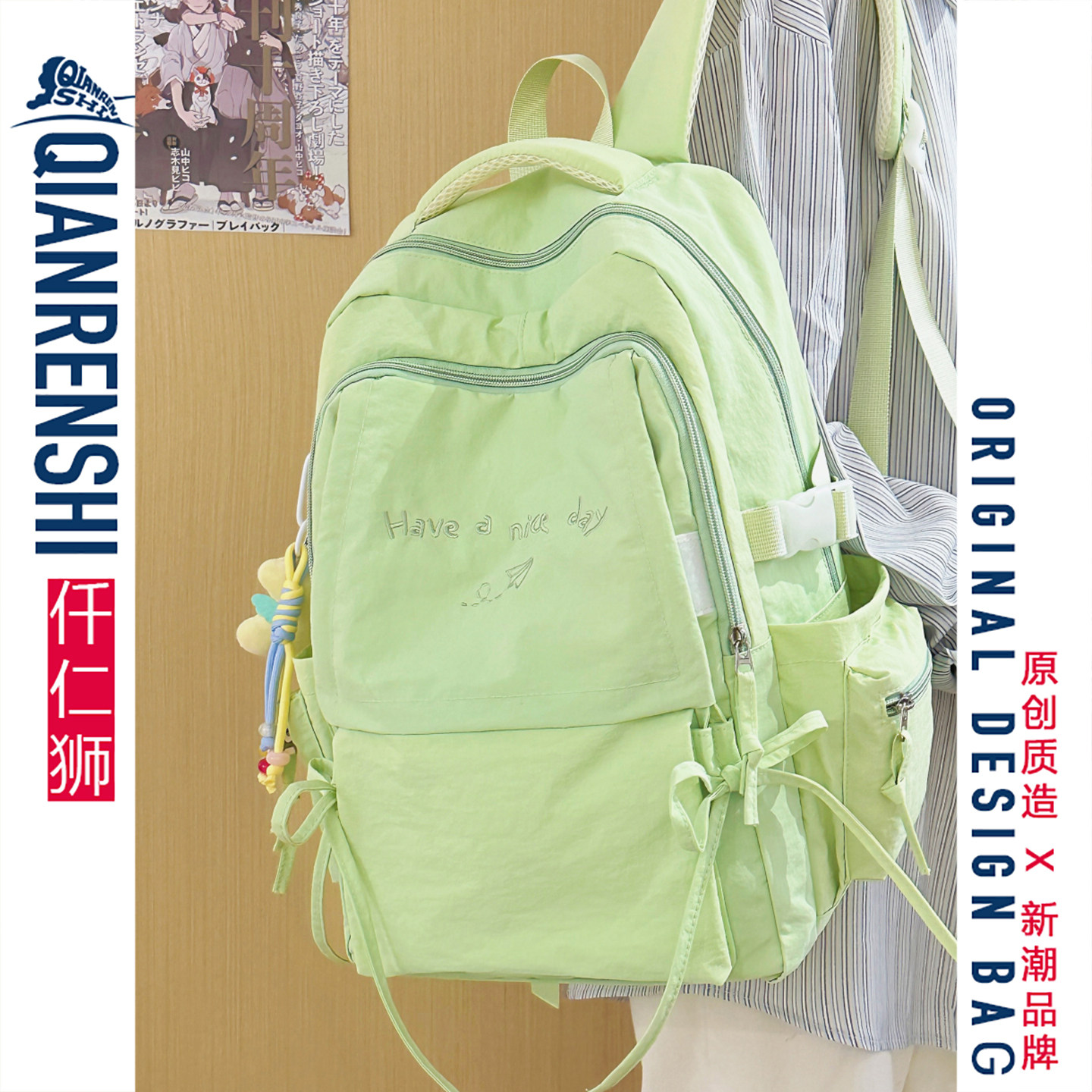 书包初中女生绿色系高颜值大容量尼龙轻便背包高中生女简约双肩包