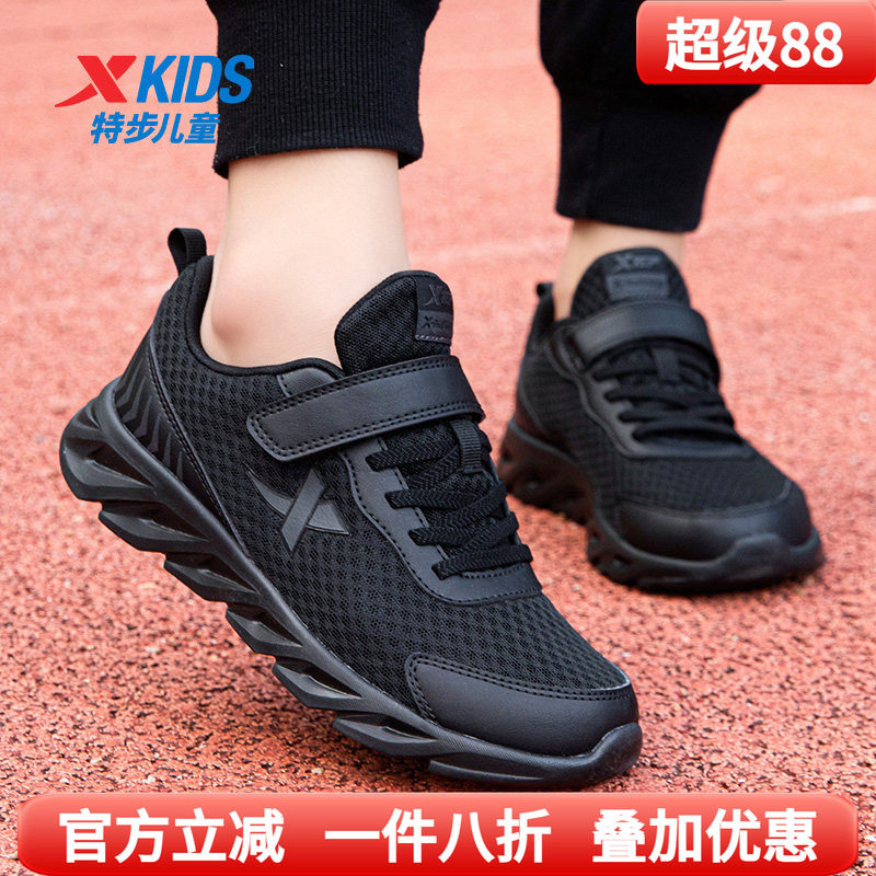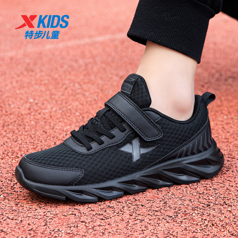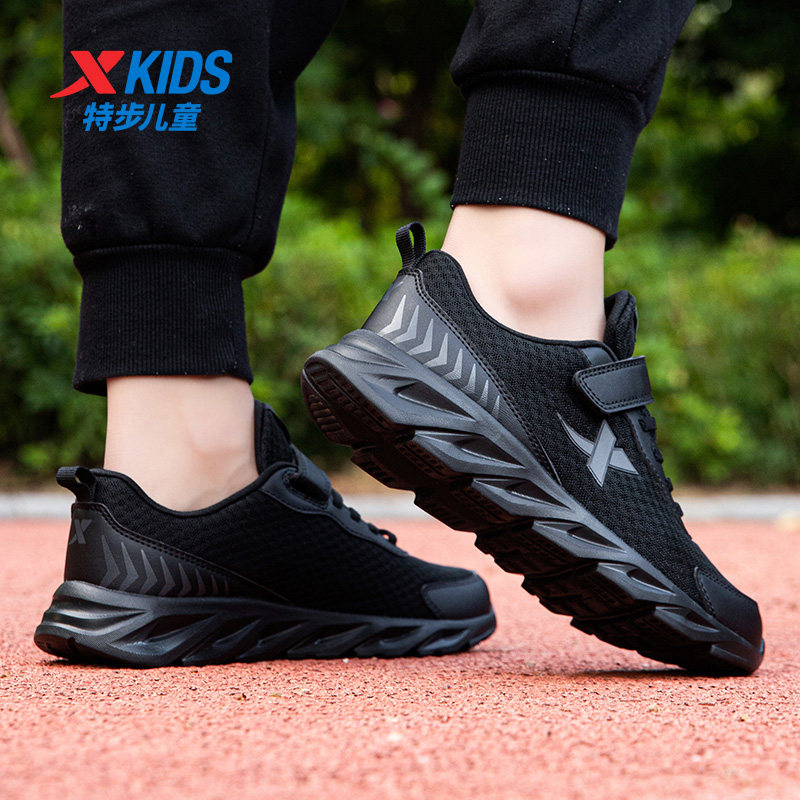 特步童鞋男童鞋子儿童运动鞋2026新款中大童黑色春季网面透气跑鞋