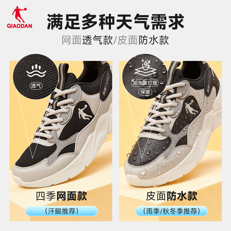 乔丹男鞋网面透气运动鞋2026春季新款休闲皮面防水软底轻便跑步鞋