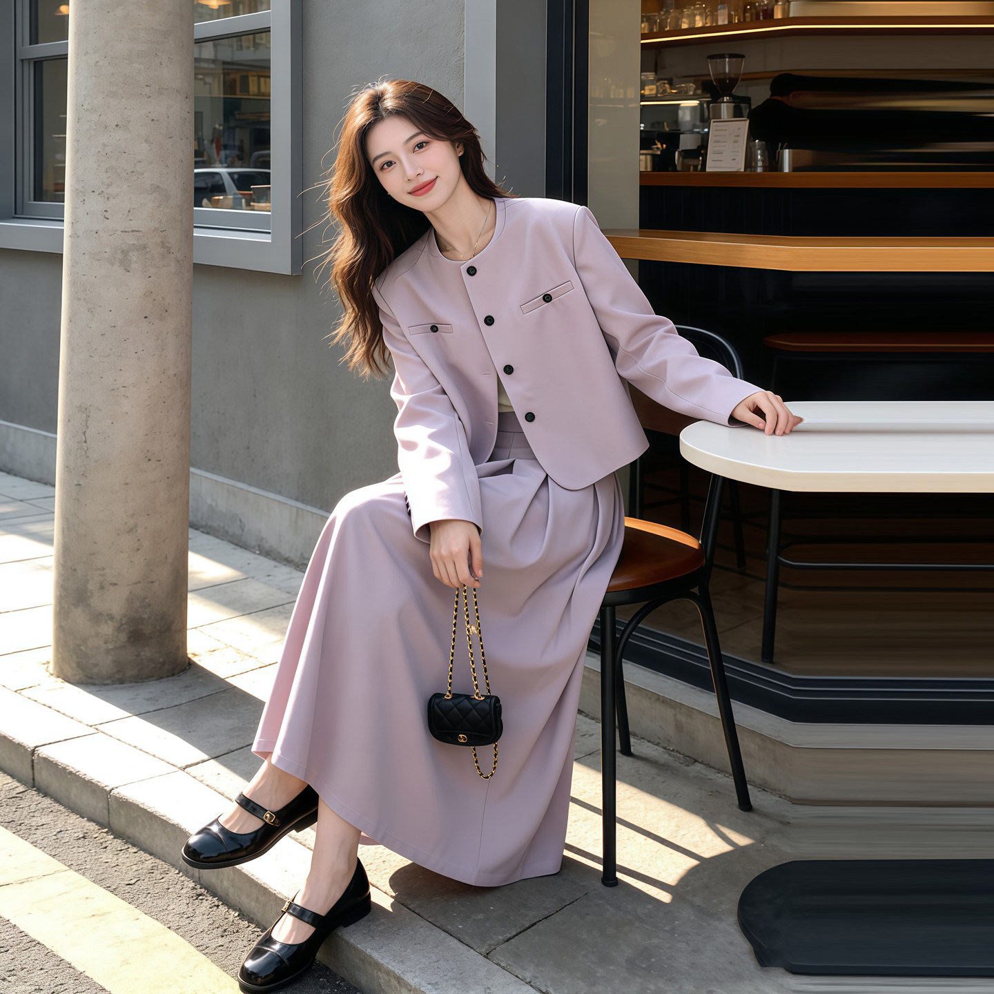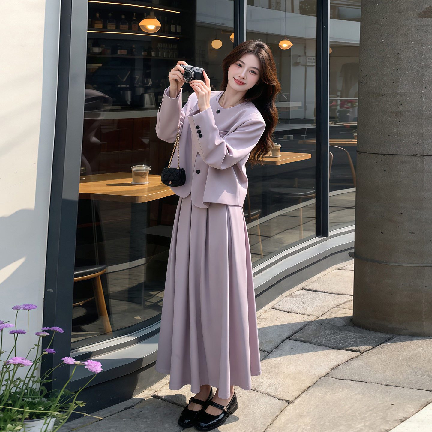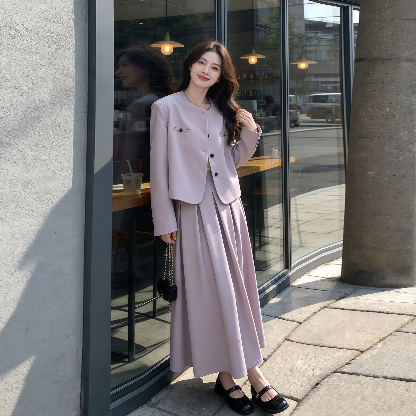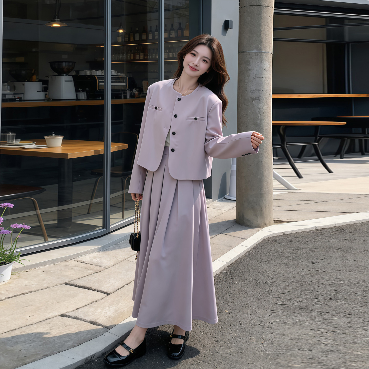 巨好看的早春西装套装裙女2026新款紫色西服外套百褶半身裙两件套
