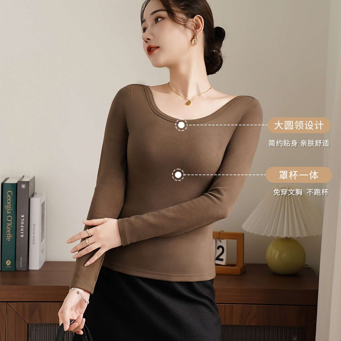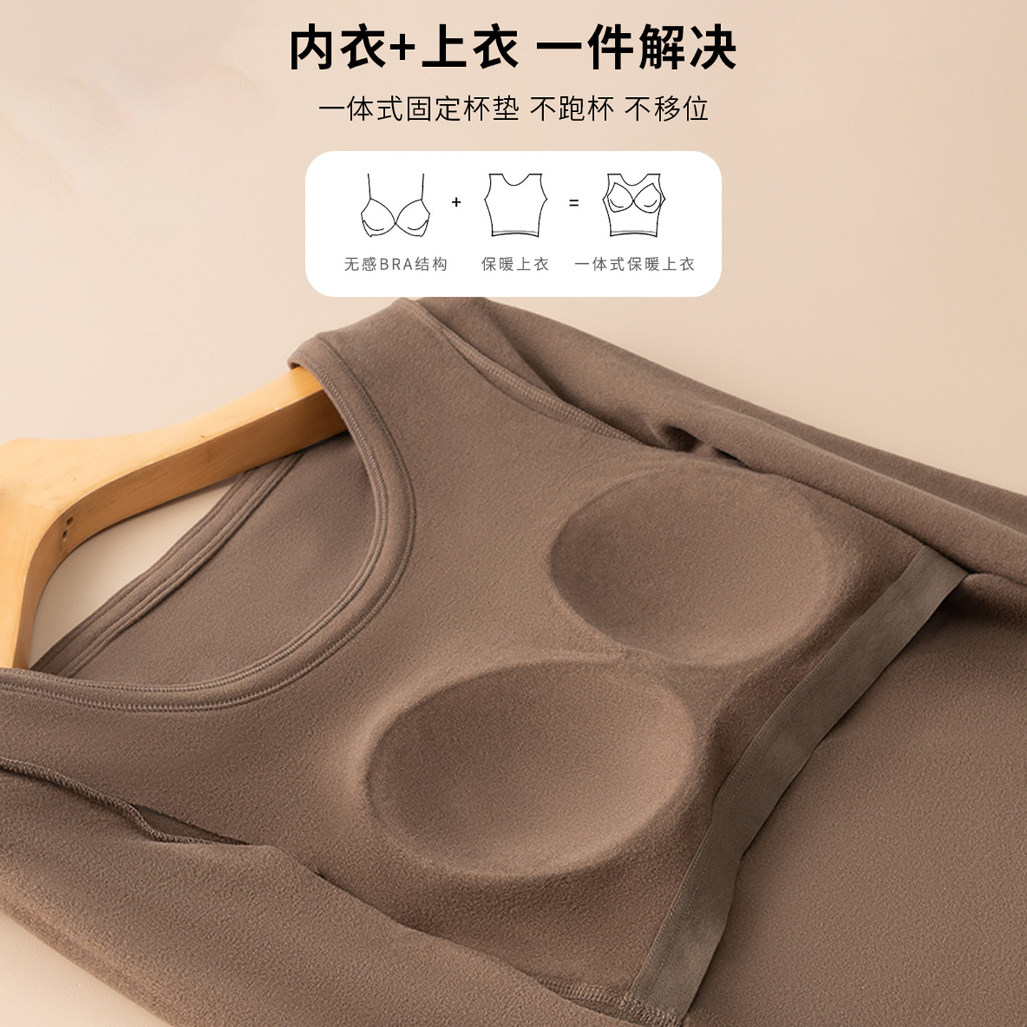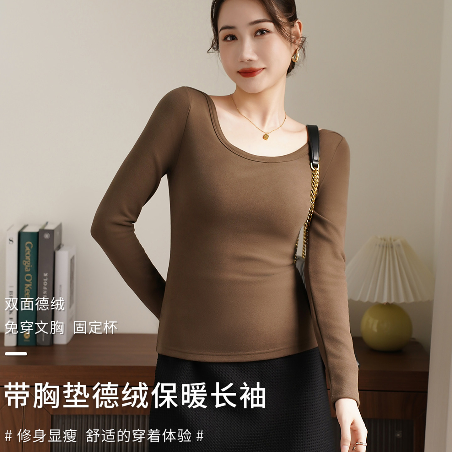 带胸垫一体德绒打底衫可外穿加绒加厚秋冬保暖长袖T恤内搭上衣女