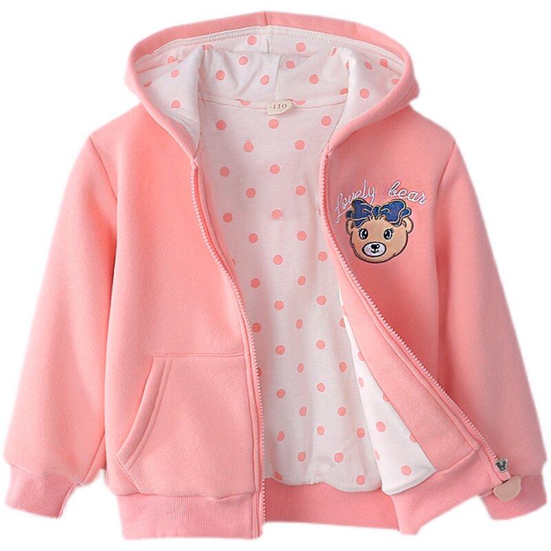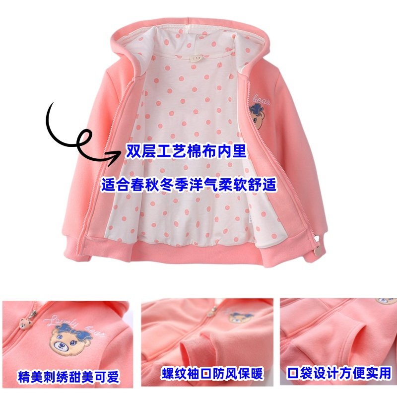 女童双层加厚卫衣外套春秋小熊秋冬童装女孩纯棉连帽儿童秋装开衫