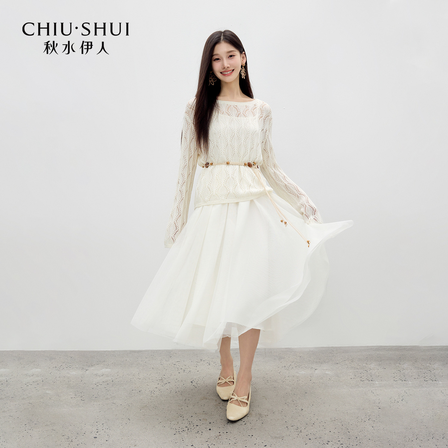 311线报网描述:立体菱格镂空钩花 双层不规则纱裙 高腰大裙