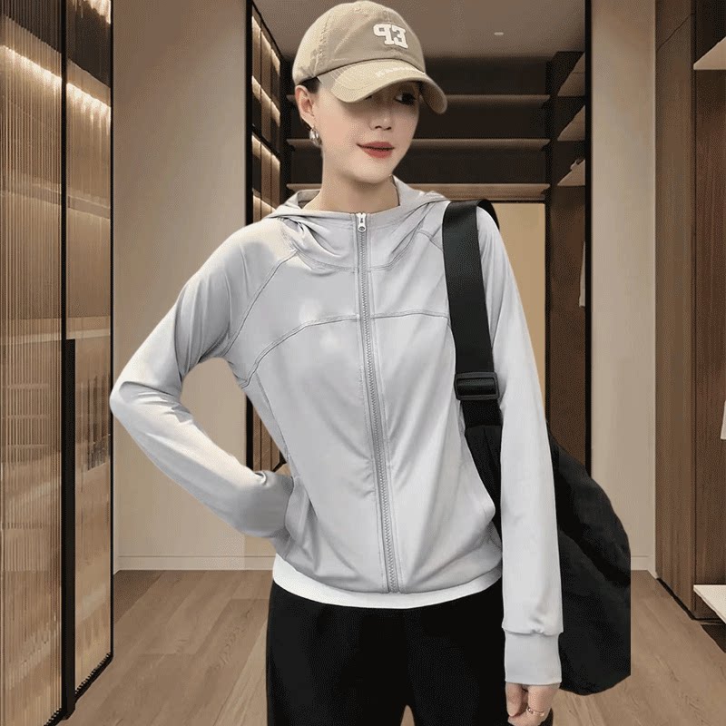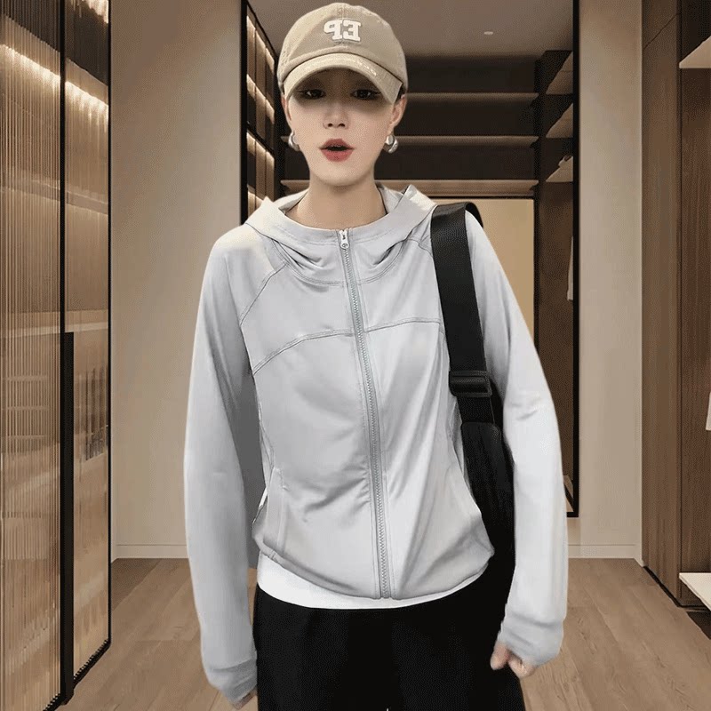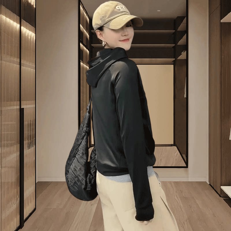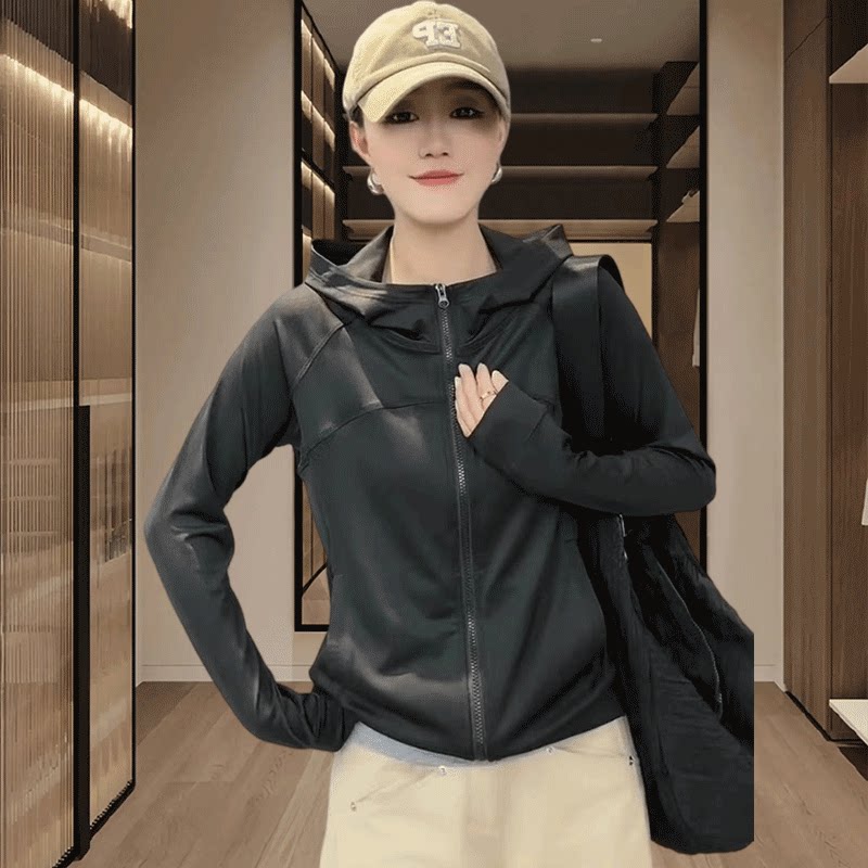 短款冰丝防晒衣女款2026夏季新款轻薄凉感运动外套黑色连帽防晒服