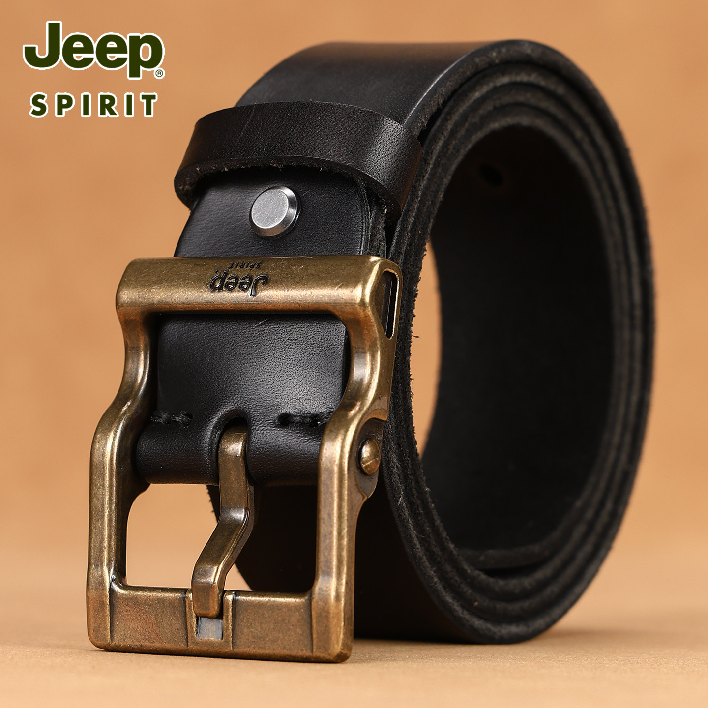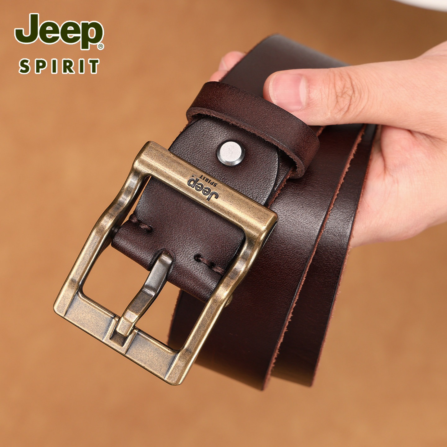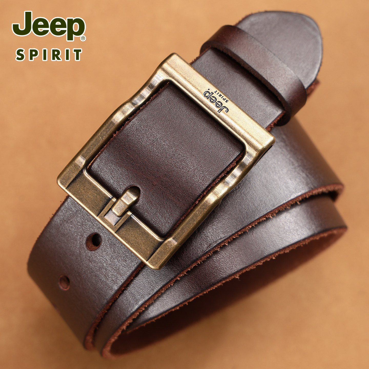 311线报网描述:Jeep吉普咖色皮带男款头层牛皮铜扣复古做旧