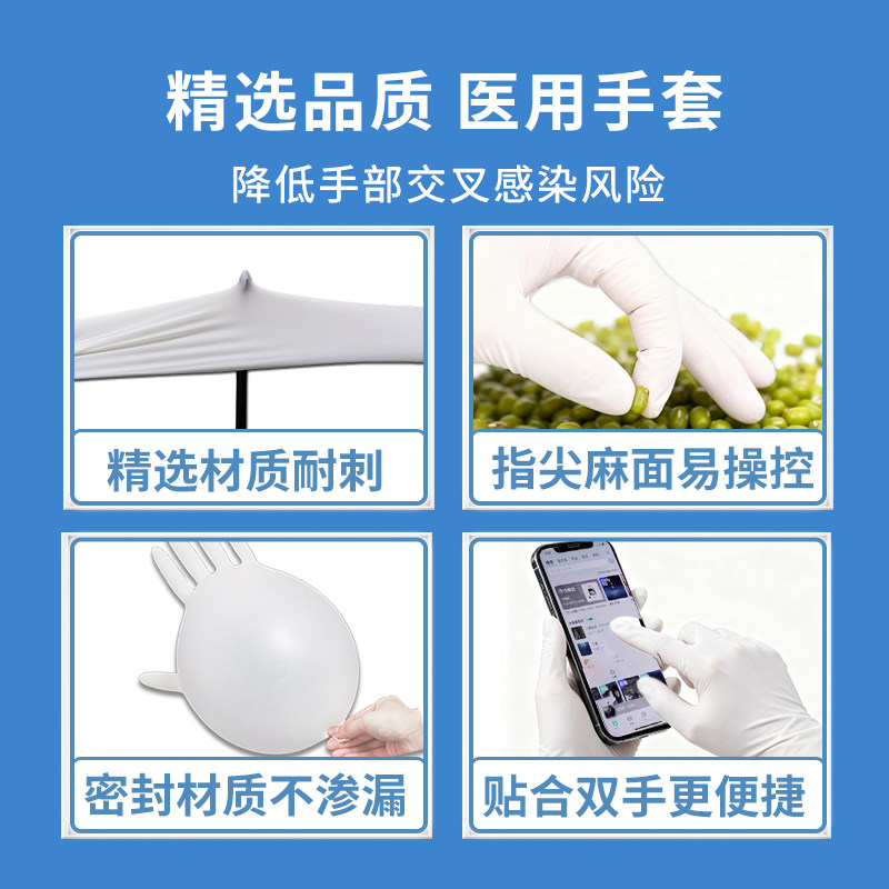 医用一次性白色丁腈耐用手套加厚高弹检查专用食品级餐饮乳胶橡胶