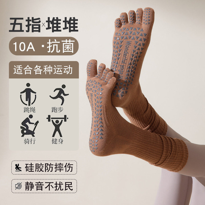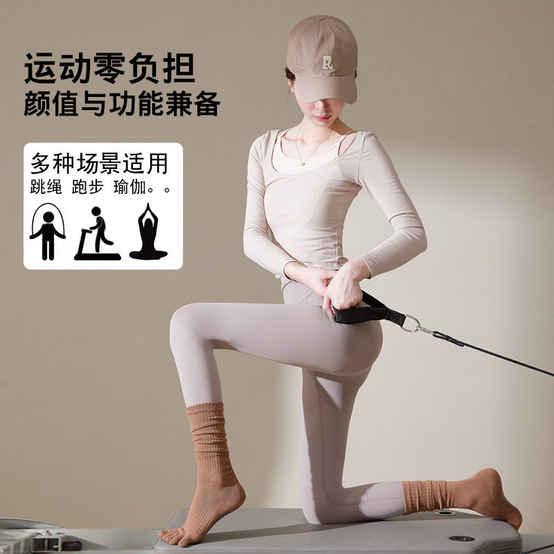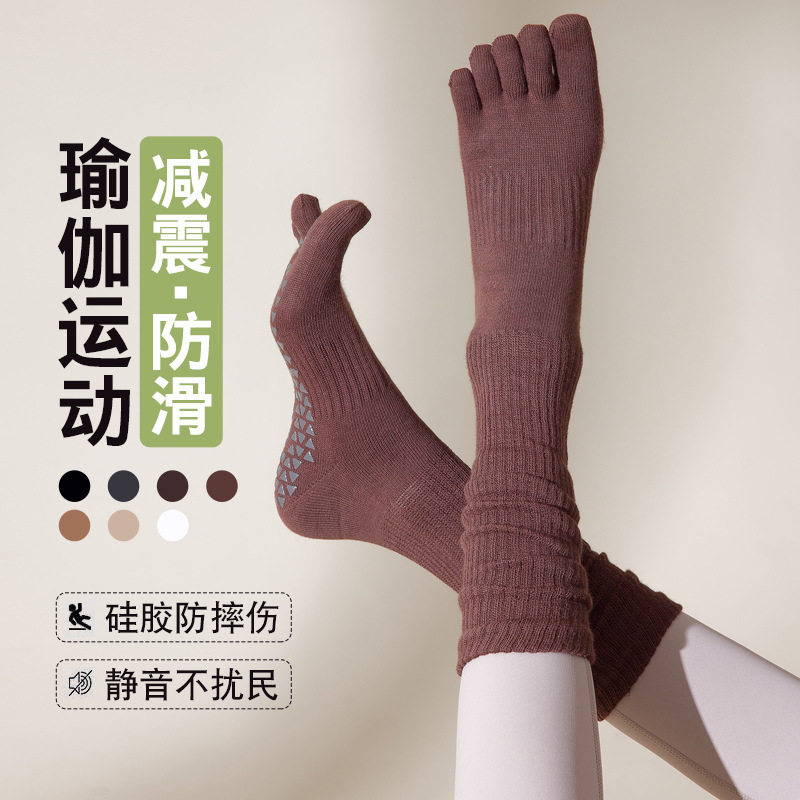 美拉德色瑜伽袜五指长筒袜专业防滑小腿堆堆显瘦普拉提运动健身春