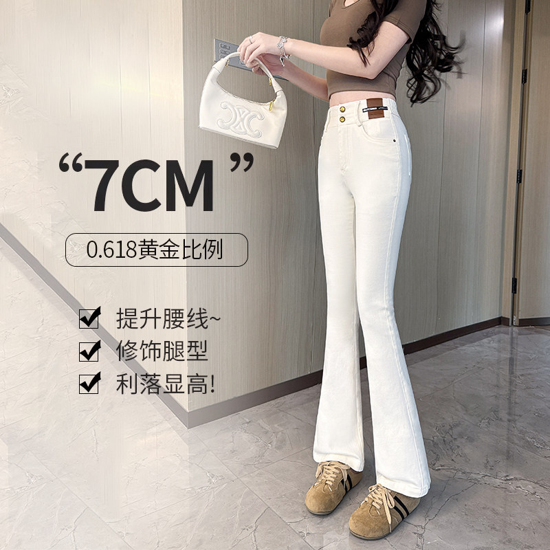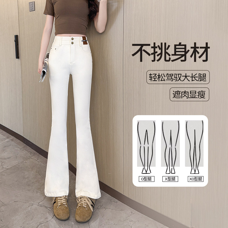 白色高腰微喇牛仔裤女款爆款2026新款春秋薄款显瘦大码喇叭裤子夏