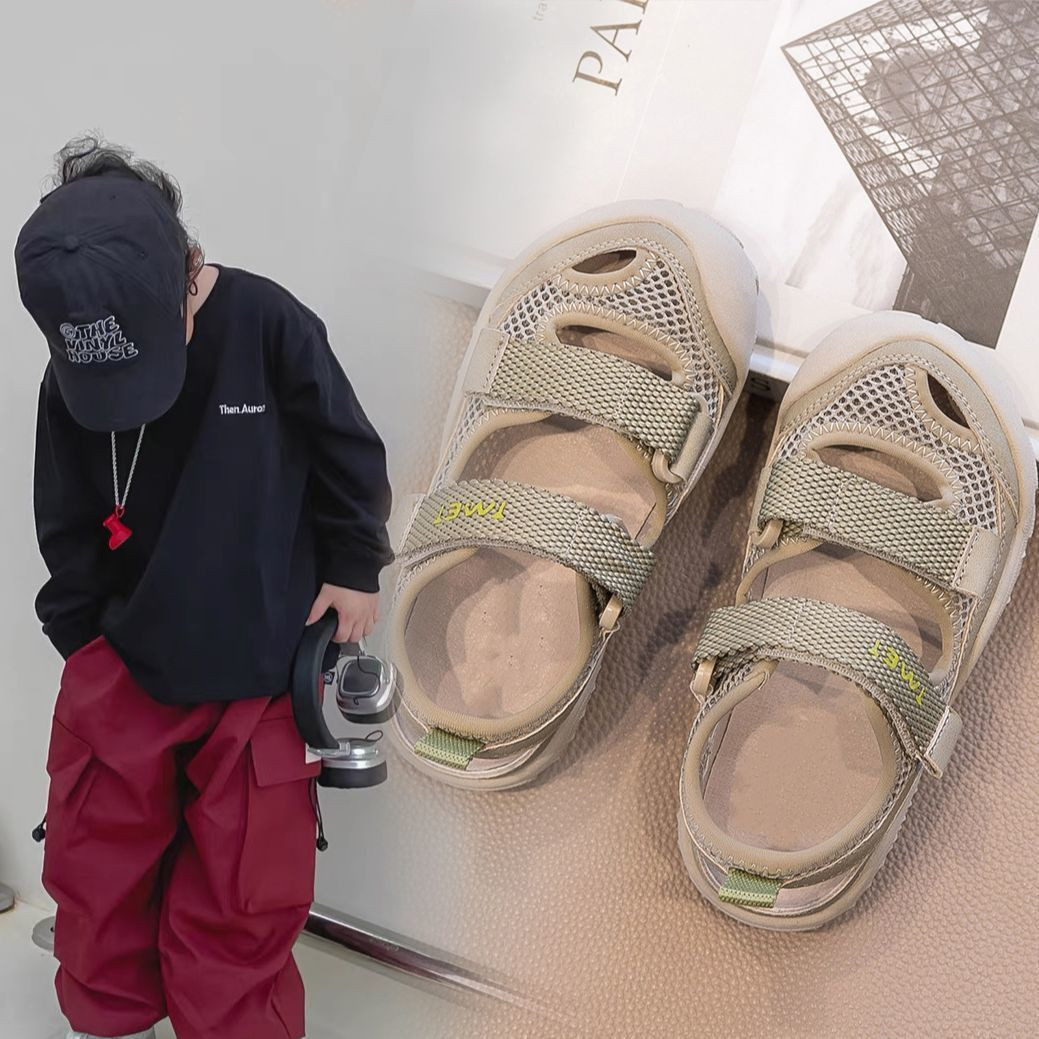 女童包头凉鞋夏款运动鞋2025新款夏季男童鞋子透气网面鞋软底薄款