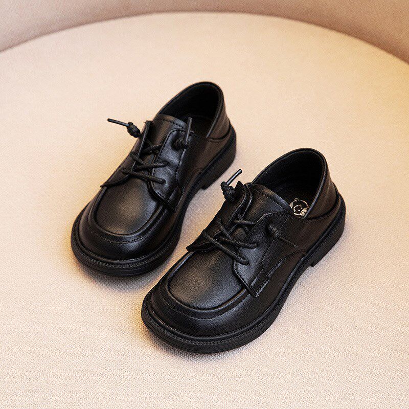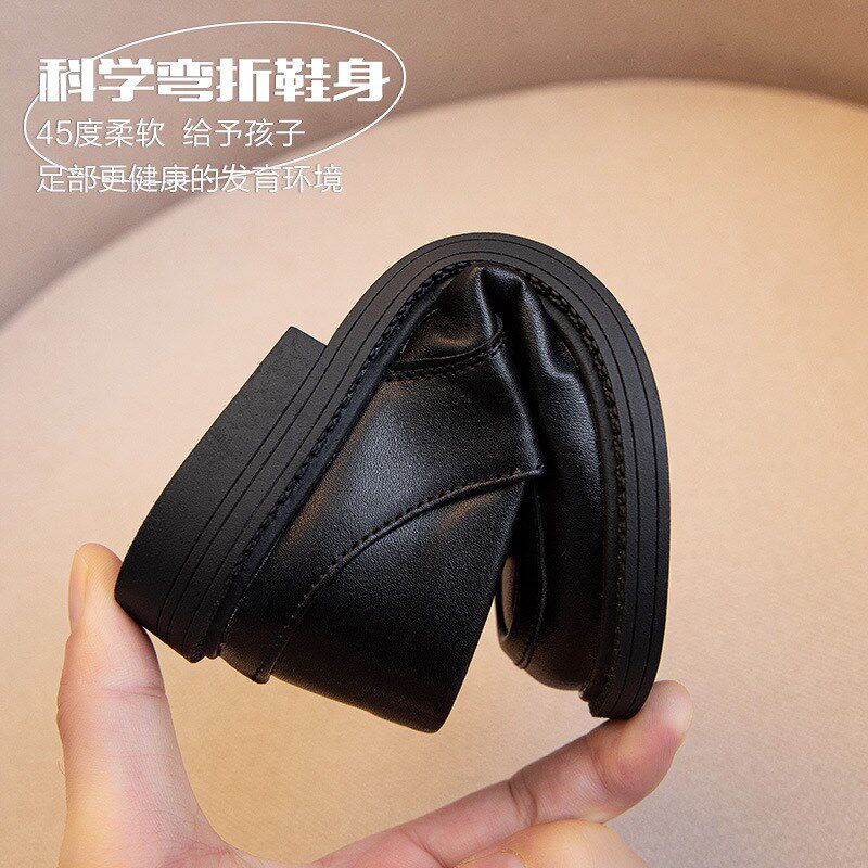 男童小皮鞋2024新款软底女童黑色儿童英伦风真皮表演出学院风单鞋