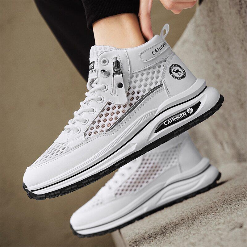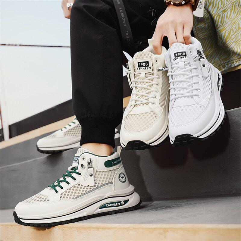 男鞋夏季透气隐形内增高10cm大网眼小白运动高帮男士网面休闲鞋子
