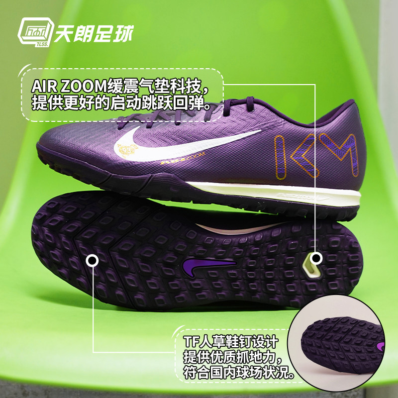 天朗足球耐克刺客16姆巴佩KM中端TF碎钉人草足球鞋成人FQ8384-500