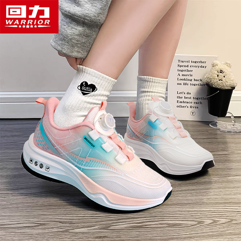 回力女鞋夏季透气薄款网面网鞋学生轻便跑步旋转纽扣休闲运动潮鞋