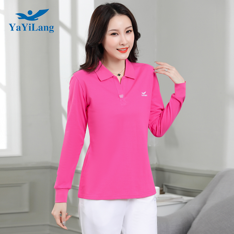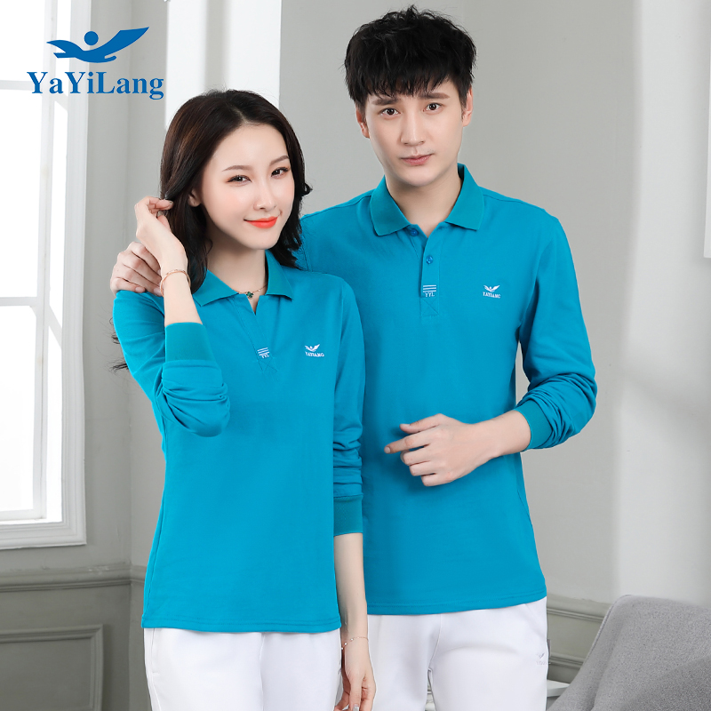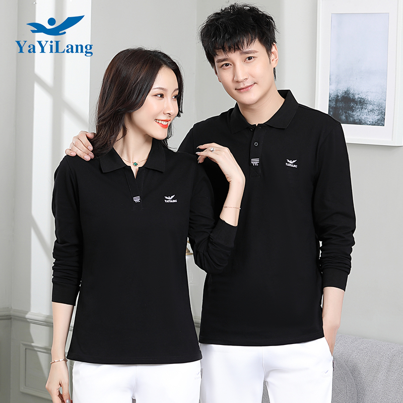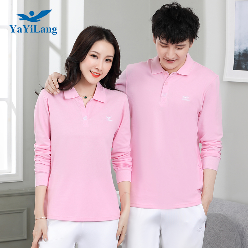 秋冬运动长袖t恤女士纯棉翻领宽松全棉上衣男款透气POLO衫工作服