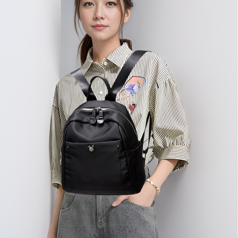 女士双肩小背包小型旅行轻便出游洋气贝壳双肩包通勤黑色双肩背包