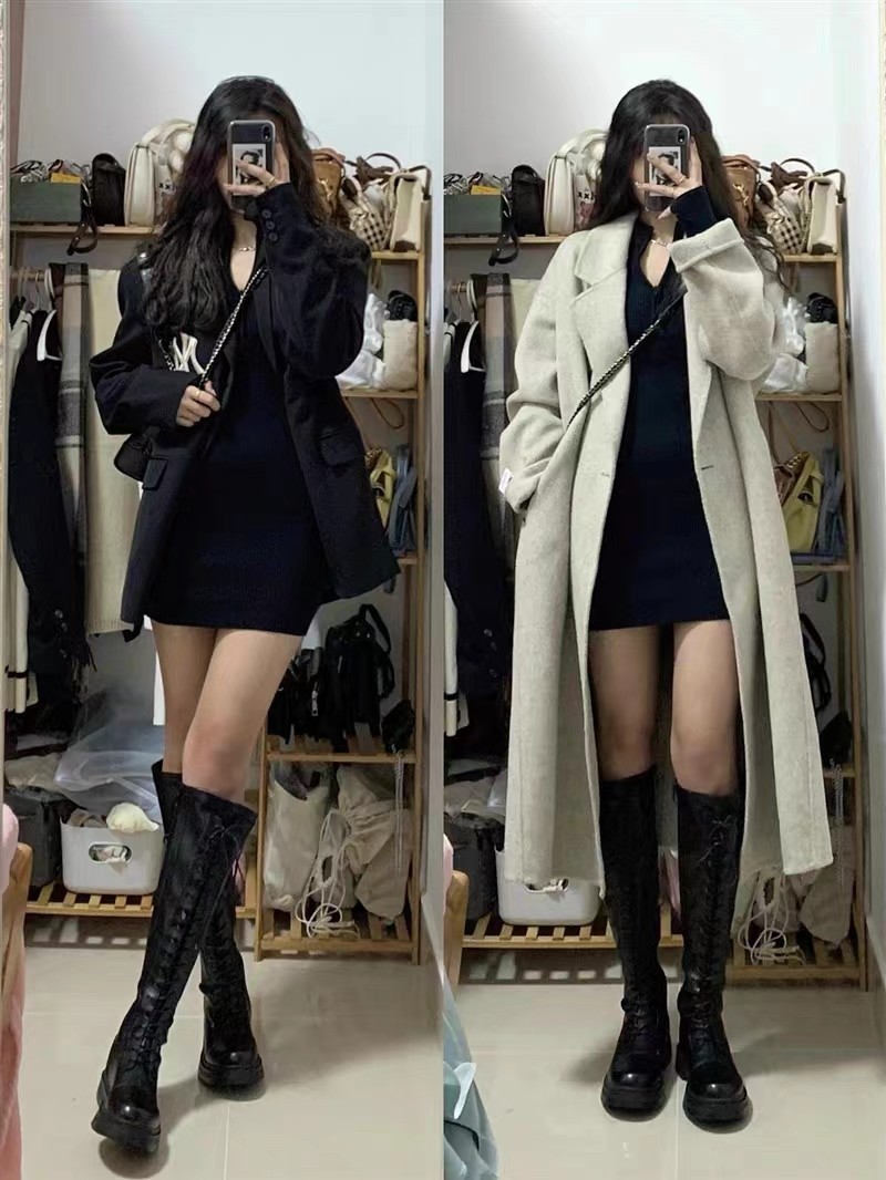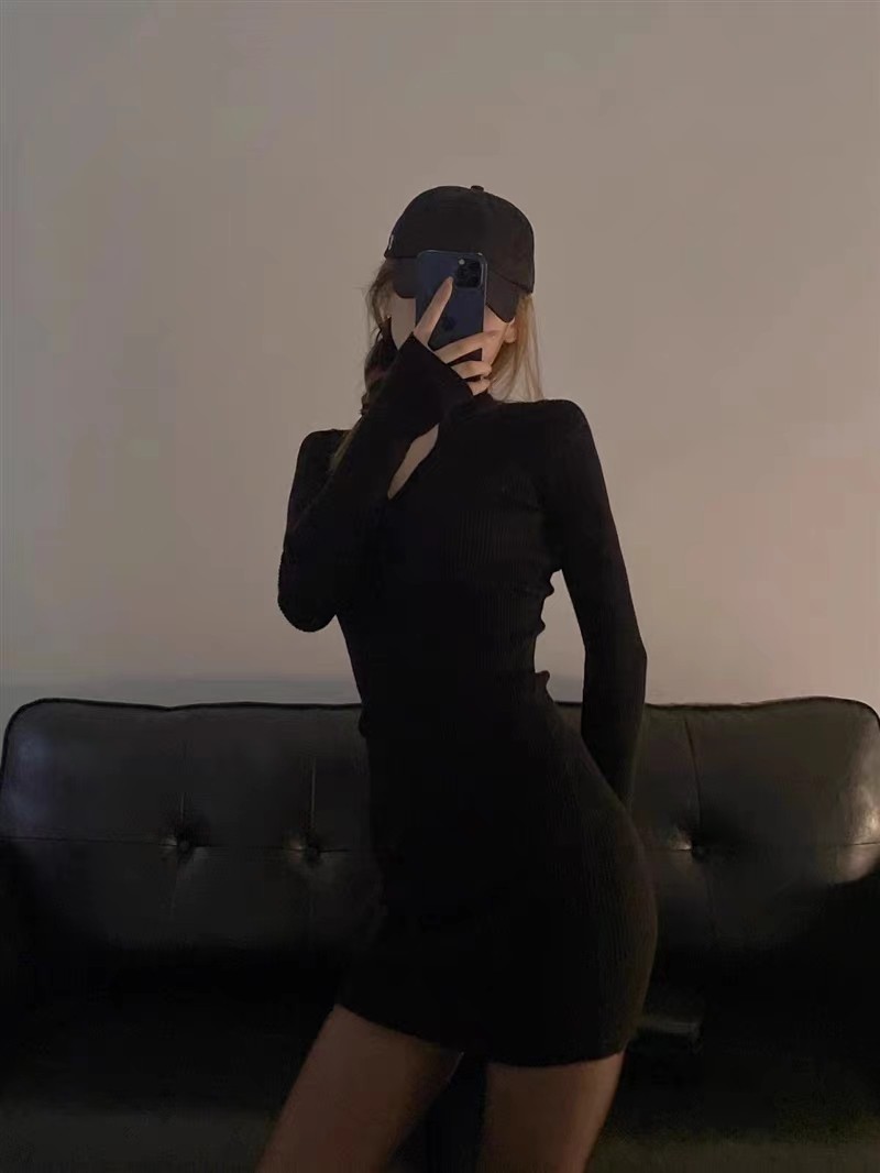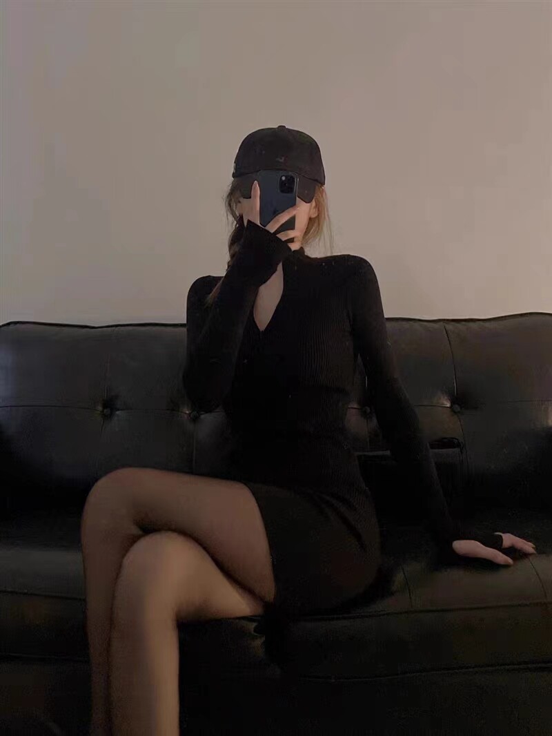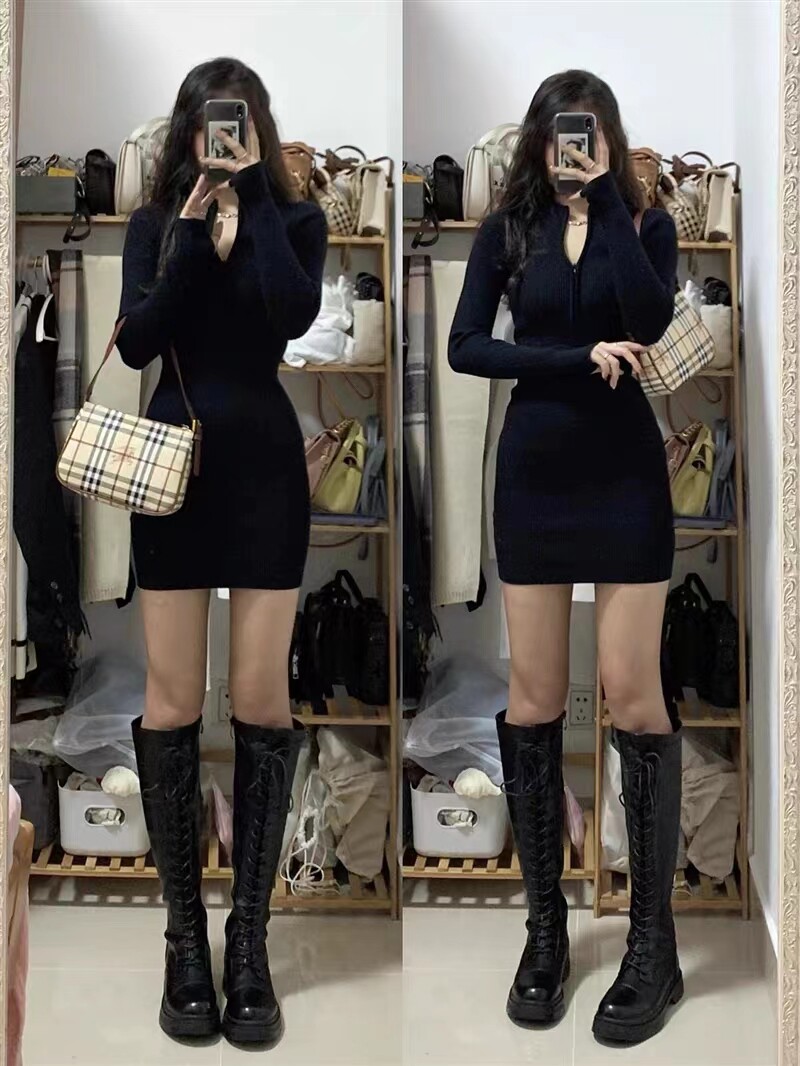 大码微胖针织黑色连衣裙子女秋冬配大衣内搭收腰打底毛衣包臀短裙