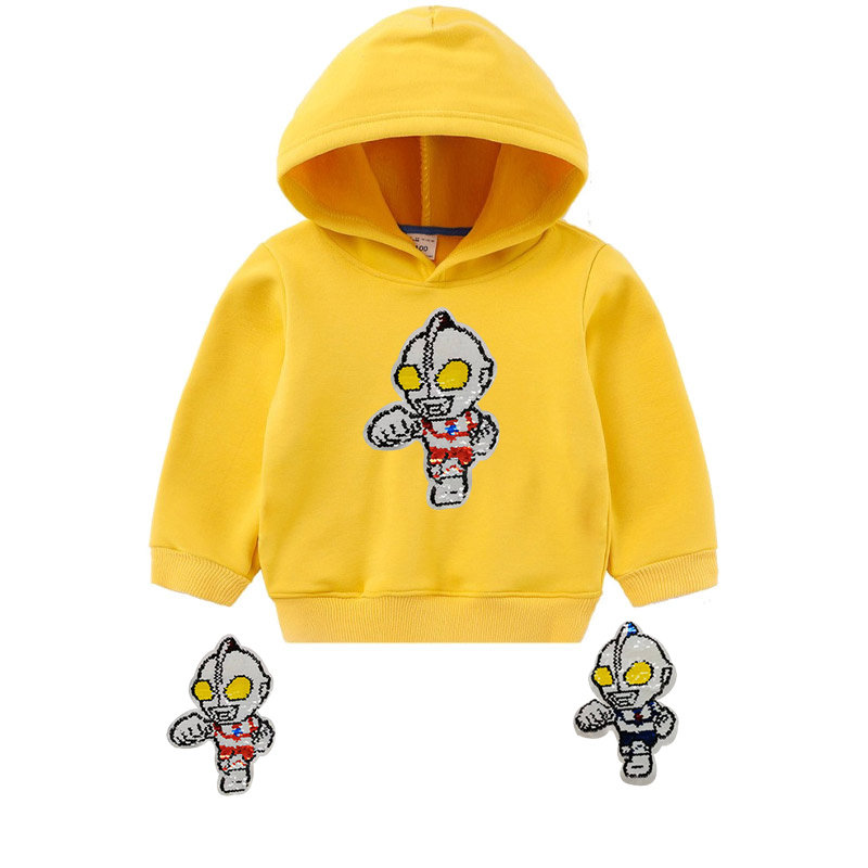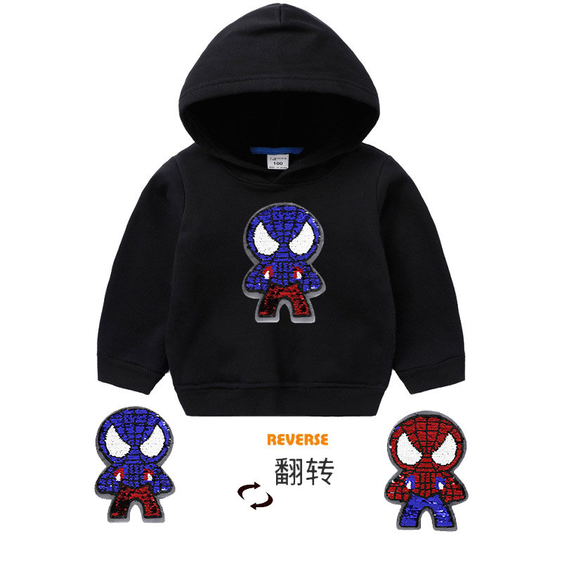 不起球翻转亮片变色儿童连帽卫衣男女童纯棉加绒童装秋冬90-150cm
