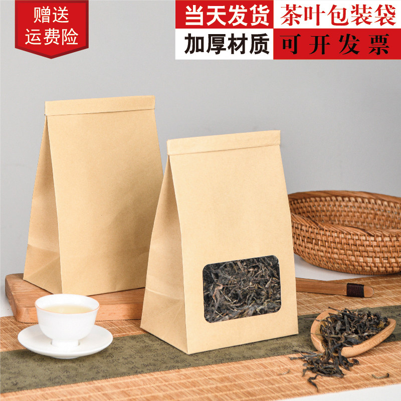 牛皮纸茶叶包装袋小白茶散茶普洱铝箔密封袋铁丝茶叶牛皮纸自封袋