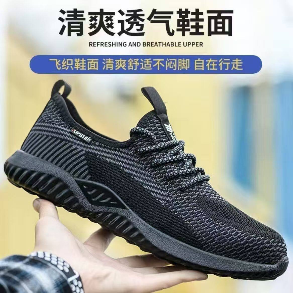 劳保鞋透气夏季男款耐磨轻便软底防砸防刺带钢头钢板防护工地鞋