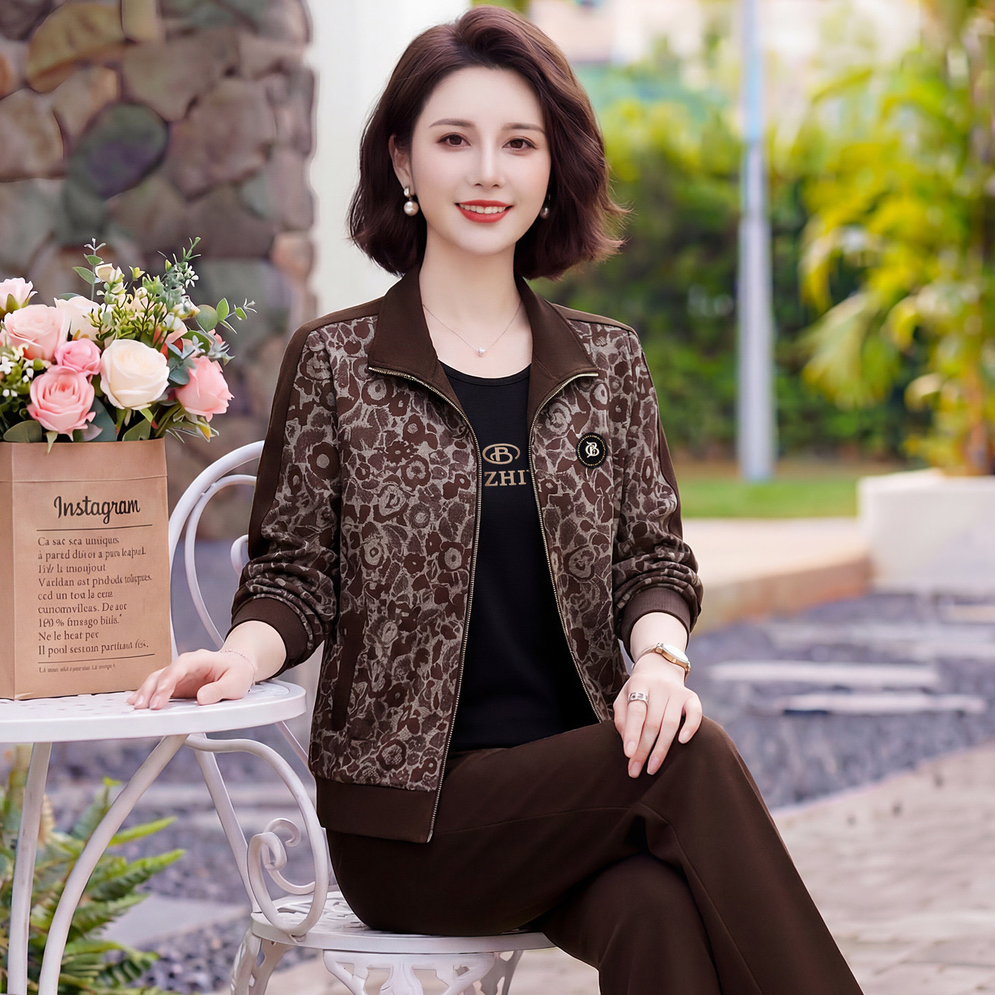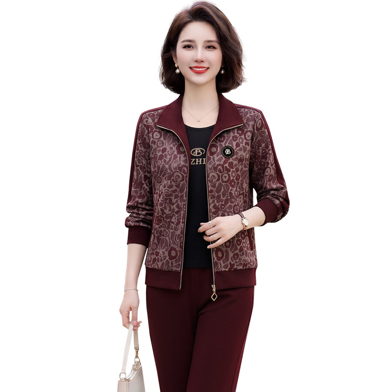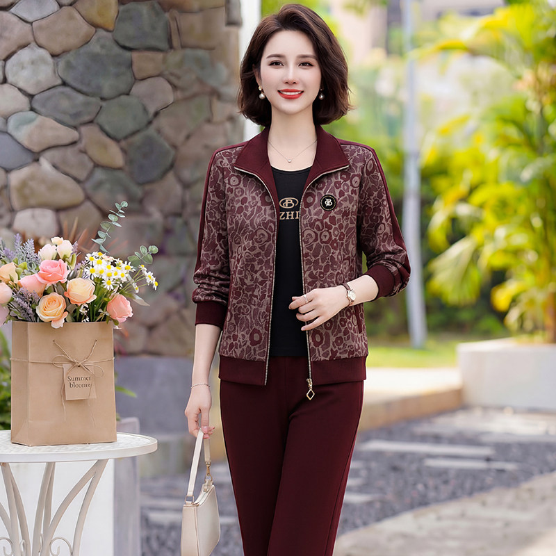 中老年女装春装套装2026新款时尚印花减龄显瘦宽松跑步卫衣三件套